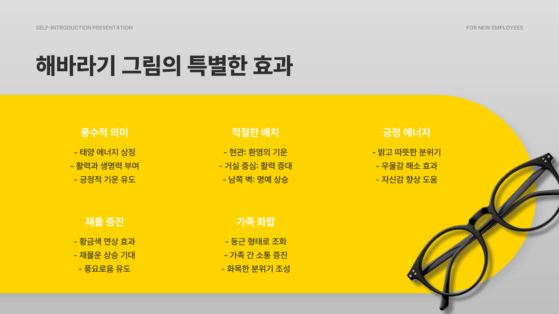 | 적합한 그림의 종류 | 자연 풍경, 행복한 가족을 담은 그림 |