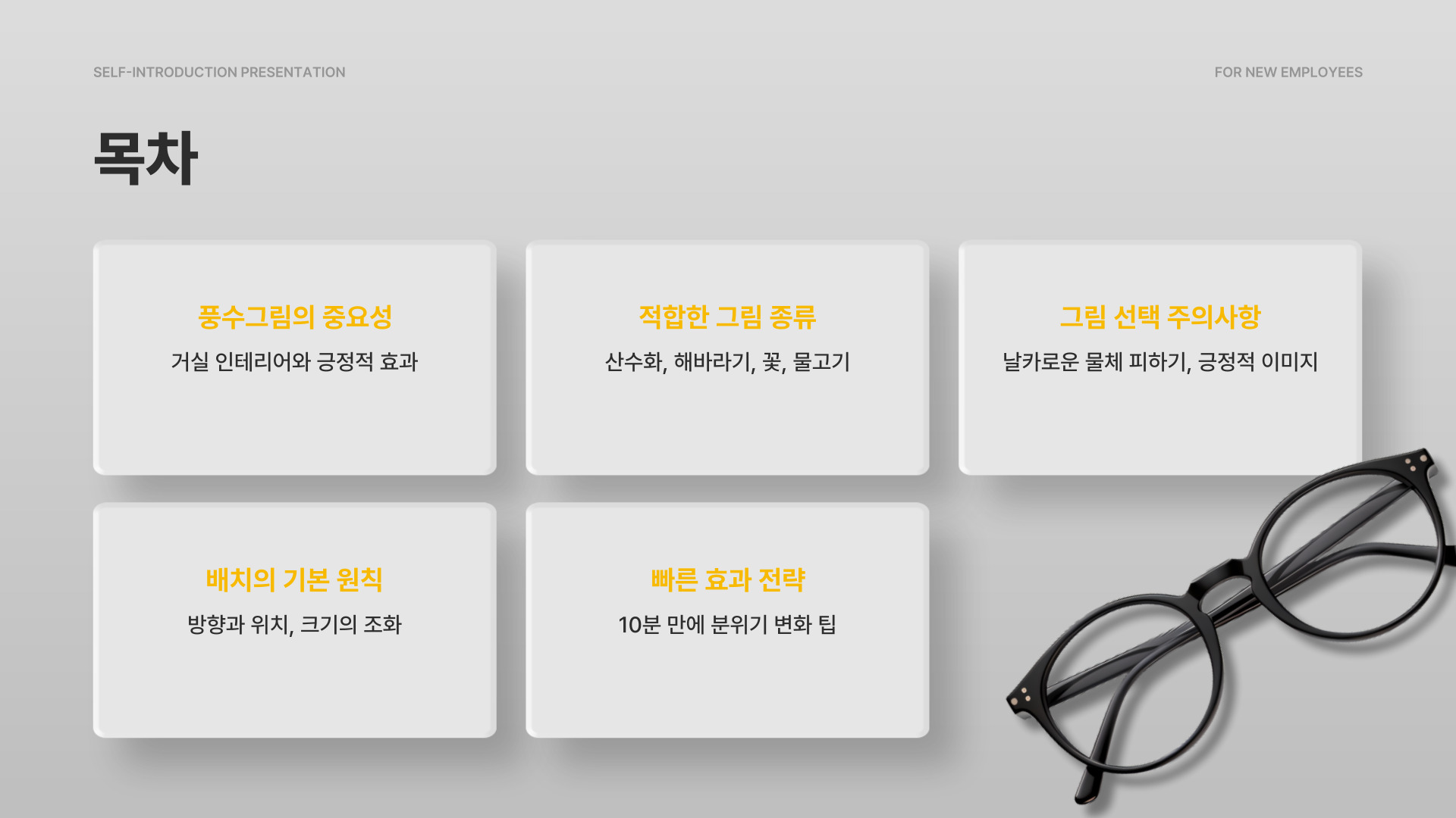 | 거실풍수그림의 중요성 | 긍정적인 에너지를 통해 가족의 유대감을 강화 |