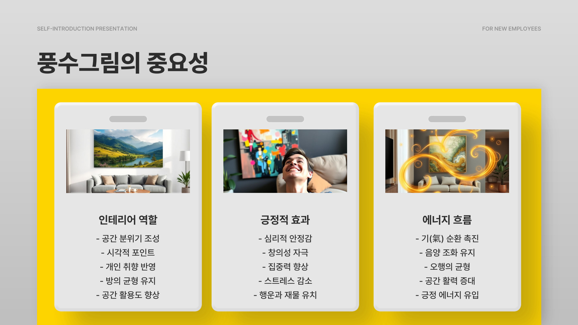 | 거실풍수그림의 중요성 | 긍정적인 에너지를 통해 가족의 유대감을 강화 |