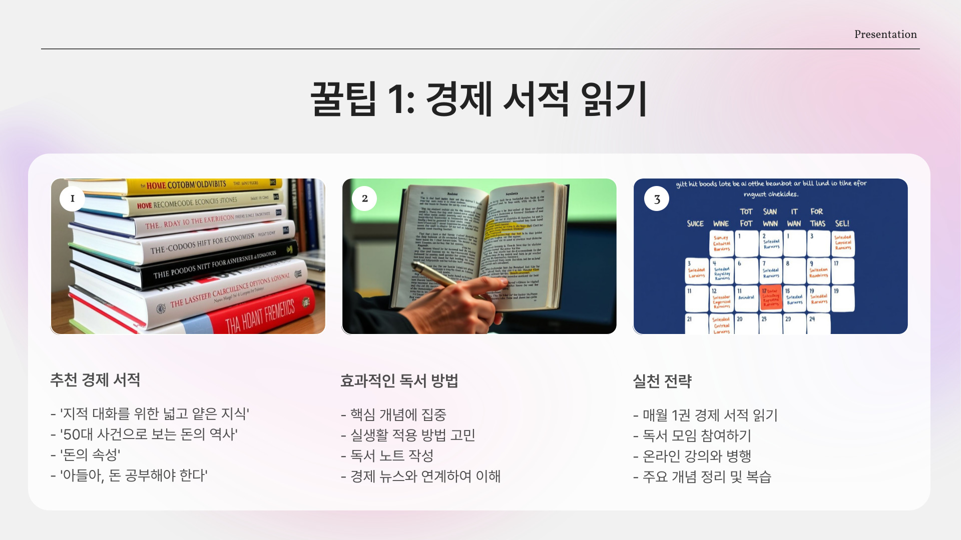 경제 공부는 단순히 지식을 쌓는 것에 그치지 않고, 그 지식을 바탕으로 실질적인 절약을 가능하게 합니다. 위에서 제안한 5가지 꿀팁을 통해 여러분의 재정 상황을 효과적으로 개선하고, 안정적인 경제 생활을 만들어 가시길 바랍니다.