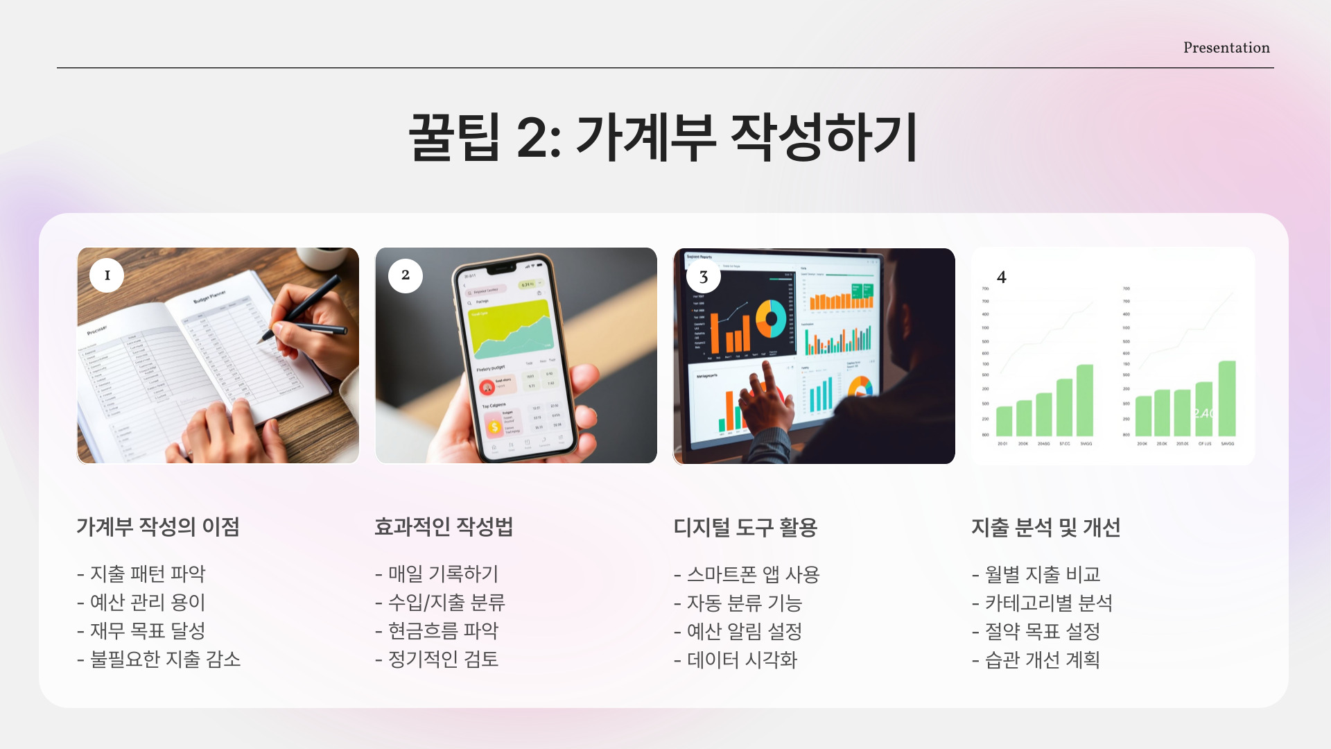 - 필요한 지출 vs. 불필요한 지출 구분