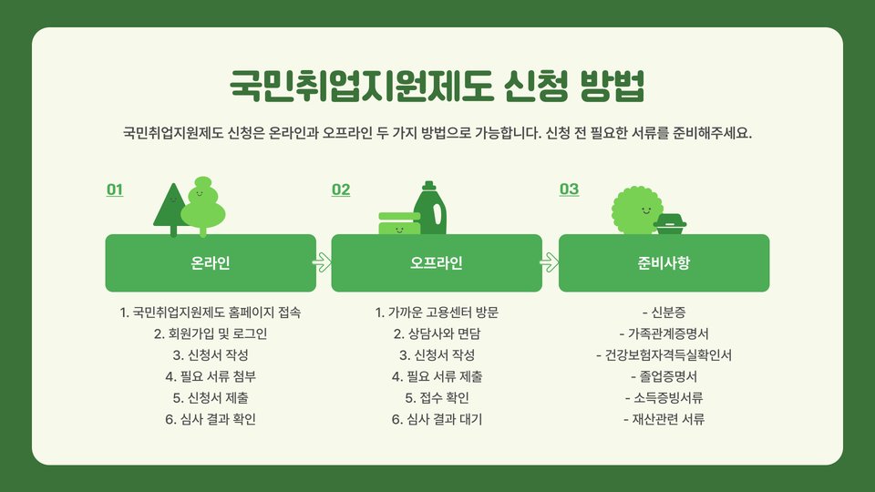 제도의 정확한 이행으로 많은 사람들이 적절한 일자리를 찾도록 도와줄 수 있기에, 국민취업지원제도에 대한 이해는 필수적입니다. 특히나 이러한 제도에 가입하려는 사람들은 어떻게 가입할 수 있고, 어떤 절차를 따라야 하는지를 확실히 알아야 합니다. 이 글에서는 국민취업지원제도의 구체적인 내용과 가입 방법 등을 다룰 것입니다.
