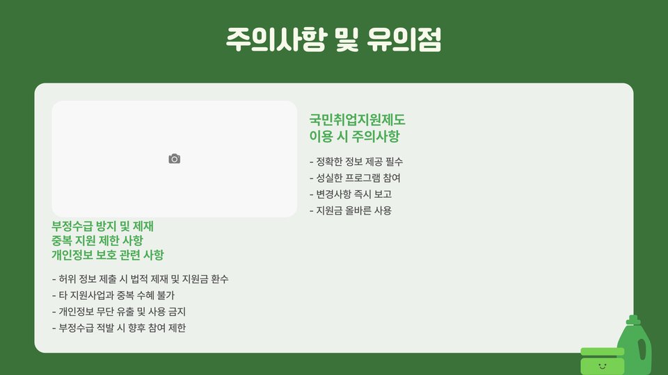 또한, 국민취업지원제도는 취업 지원금과 자기개발 지원을 통해 구직자들이 보다 쉽게 일자리를 찾을 수 있도록 돕습니다. 이 제도를 통해 구직자들은 자기소개서 작성이나 면접 준비에 대한 지원을 받을 수 있습니다.
