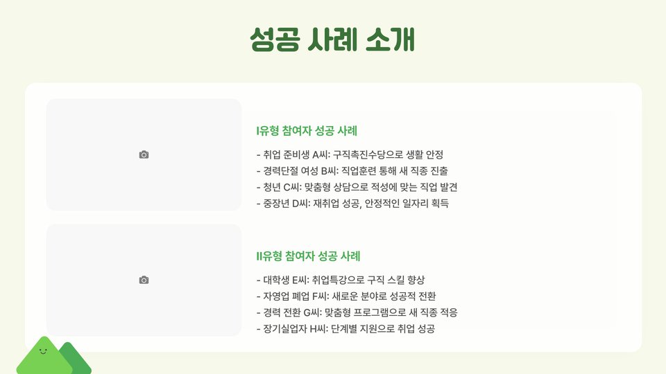 국민취업지원제도의 시행 이후 많은 구직자들이 실제로 취업에 성공하고 있습니다. 이 제도는 전문적인 취업 정보와 정기적인 상담 서비스를 통해 구직자들에게 실질적인 도움을 주고 있습니다.