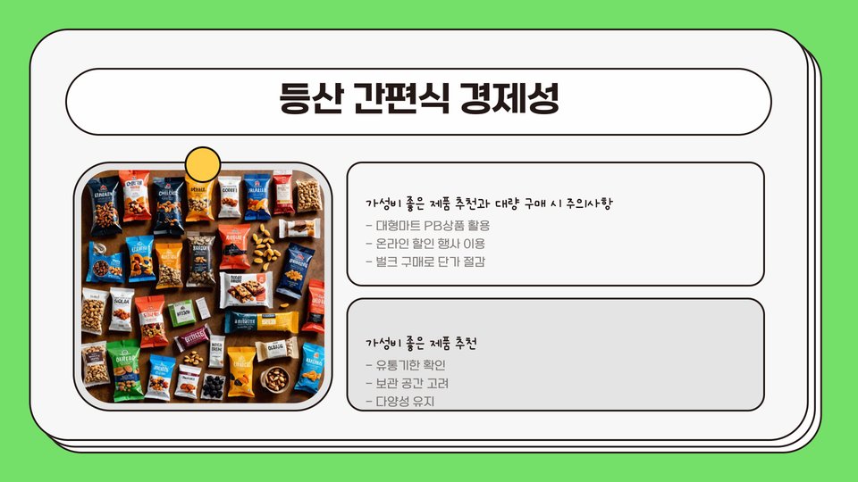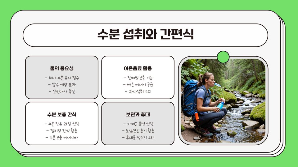 - 등산 중 에너지 보충이 필수적임
