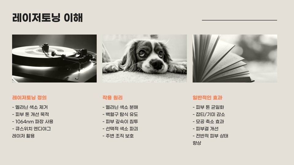 - 레이저토닝은 색소성 변화를 줄이는 효과적인 치료법입니다.