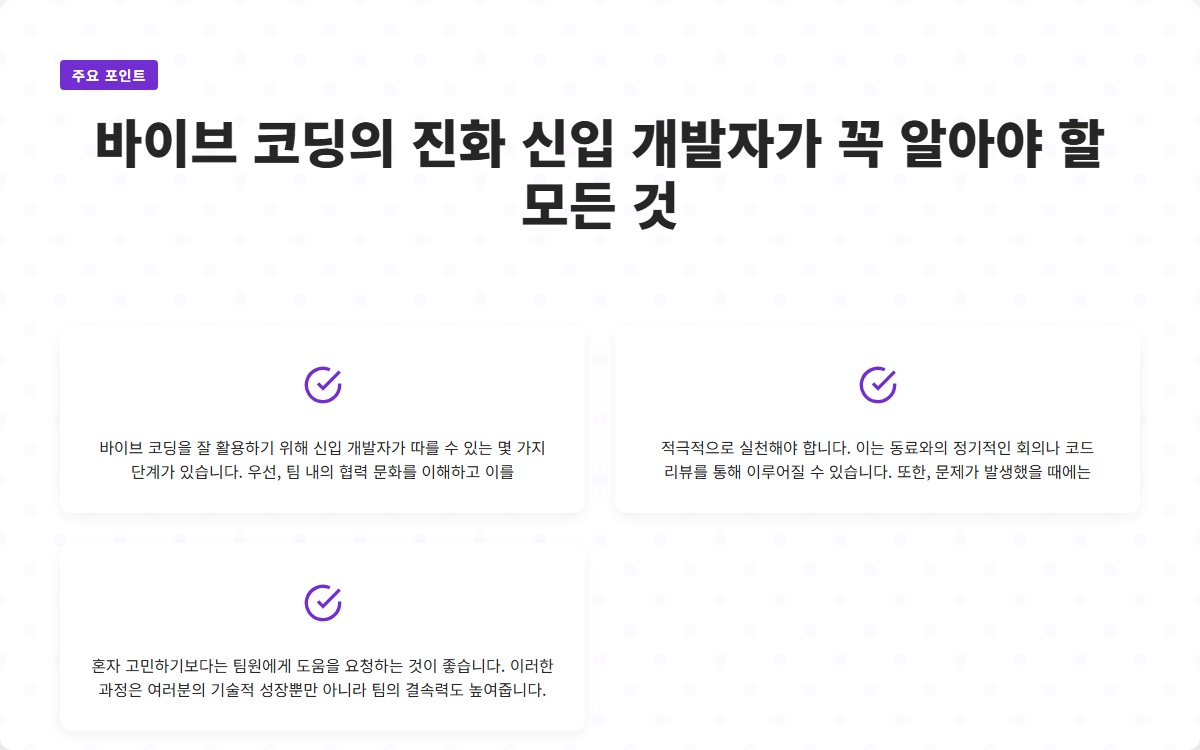 - 바이브 코딩은 팀워크와 소통을 중시하며, 코드 품질 향상에 기여합니다.