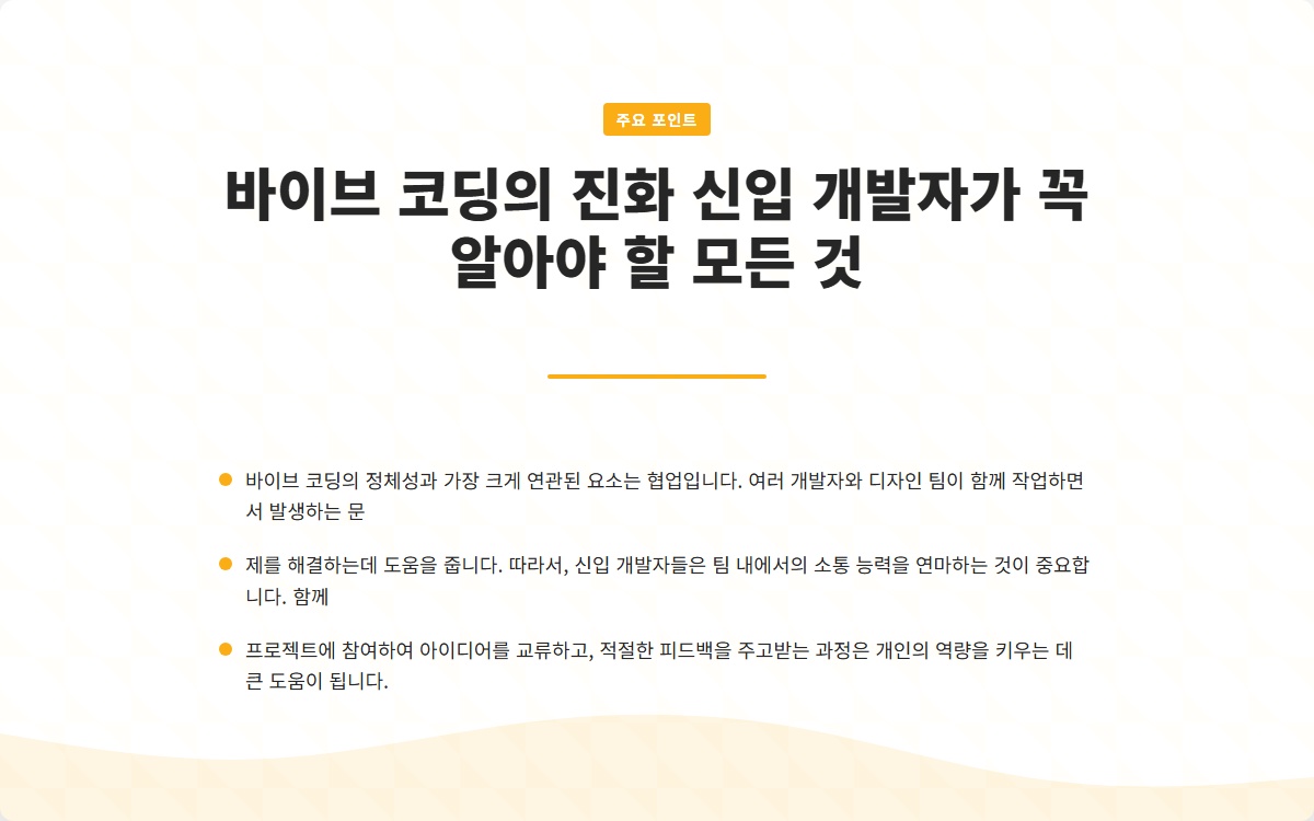 - 바이브 코딩은 팀워크와 소통을 중시하며, 코드 품질 향상에 기여합니다.
