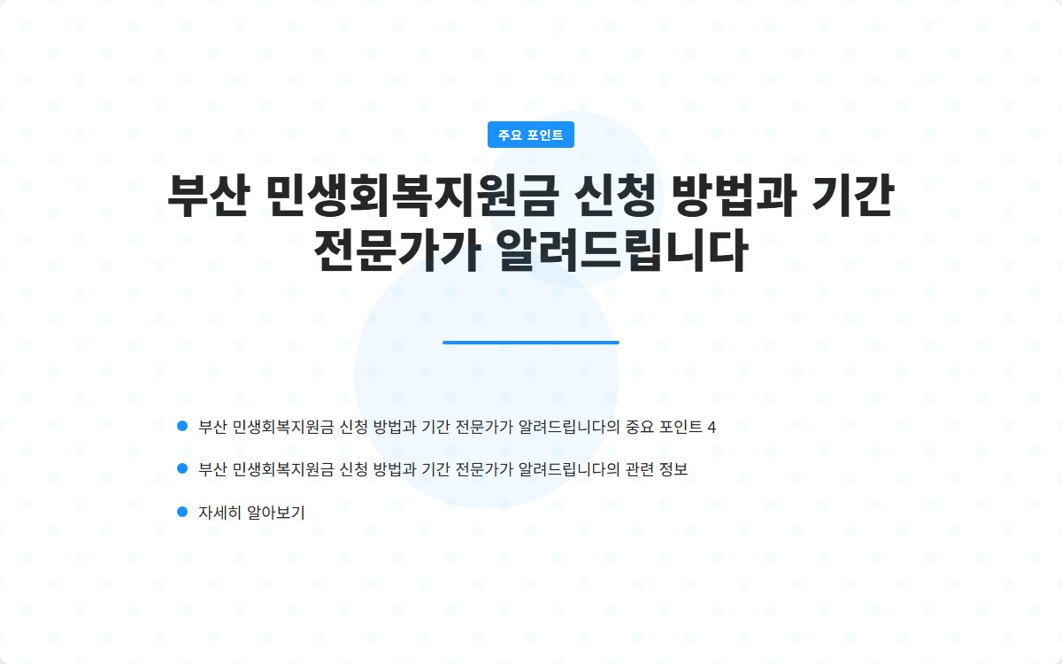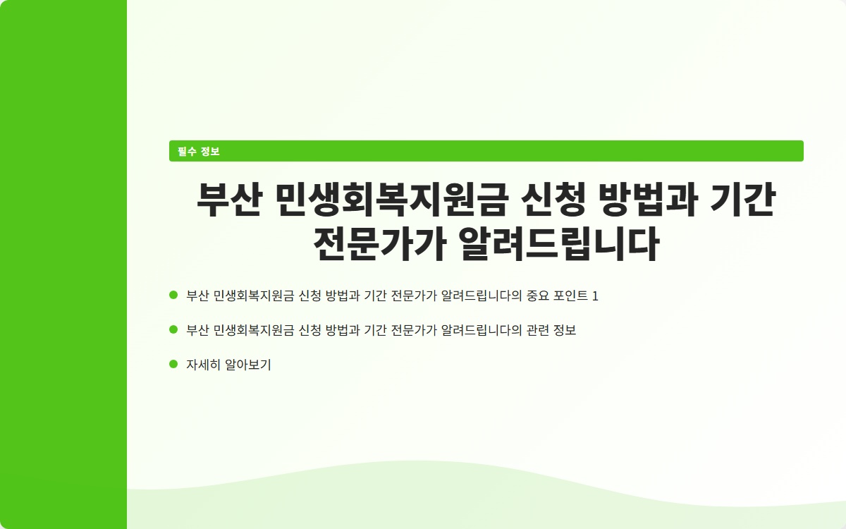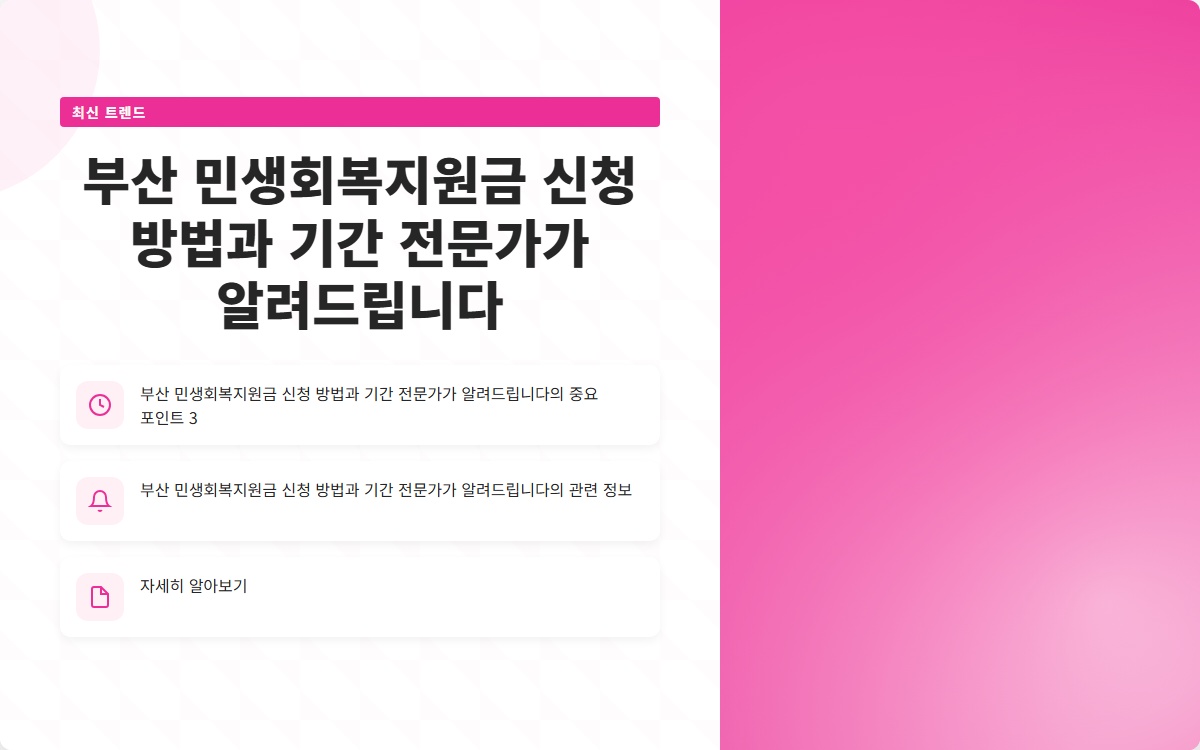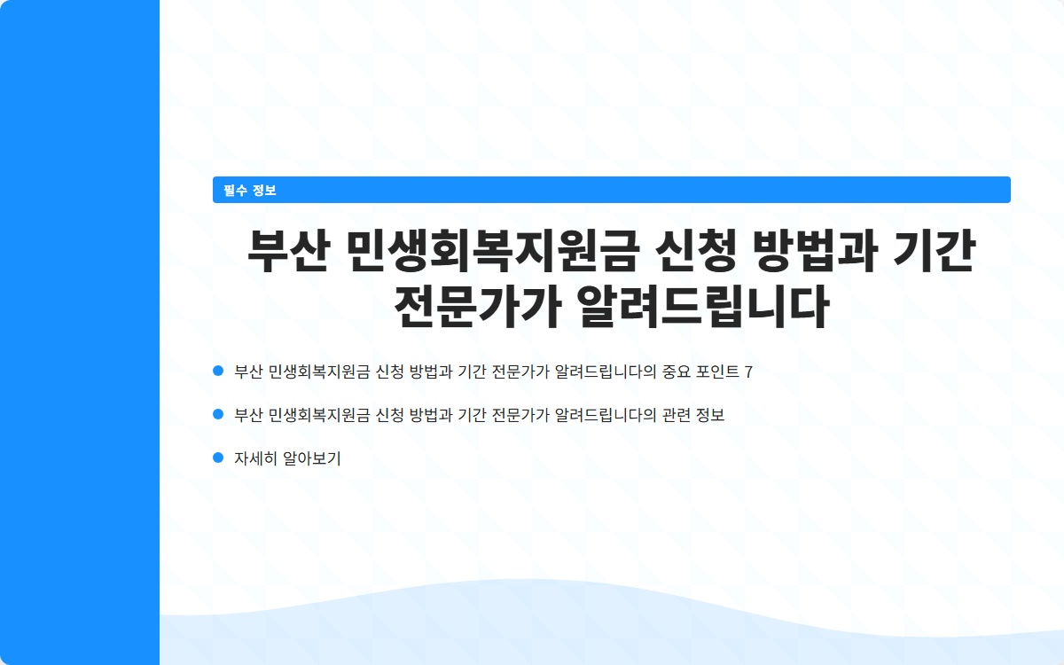 부산 민생회복지원금은 경제적 어려움 속에서 국민들에게 큰 도움이 될 정책입니다. 신청기간을 잘 기억하시고, 필요한 서류를 준비하여 신청하세요. 도움이 되는 이 지원금으로 여러분의 가정이 조금이나마 편안해지기를 바랍니다.