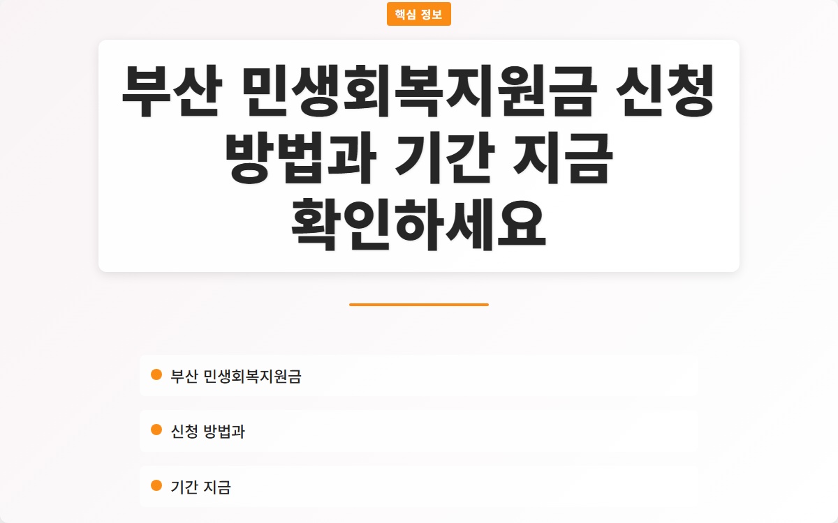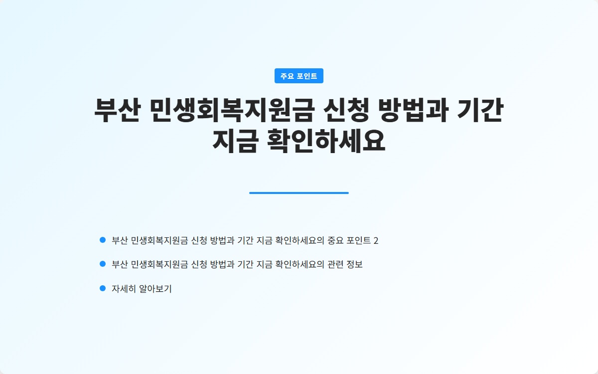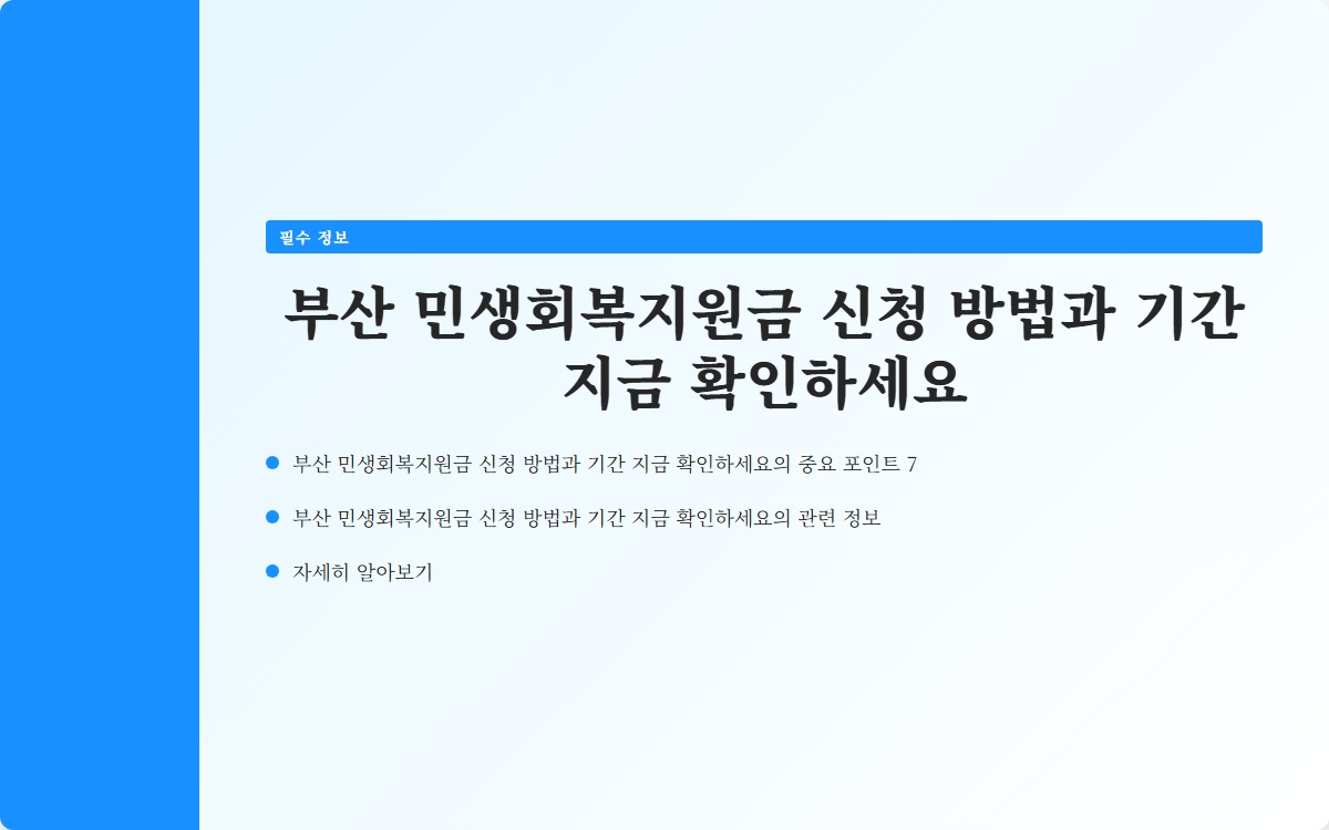 부산 민생회복지원금은 저소득층과 취약계층에게 실질적인 도움을 주기 위해 설계된 정책입니다. 신청 방법과 기간을 정확히 이해하고, 빠르게 신청하시길 추천드립니다!
