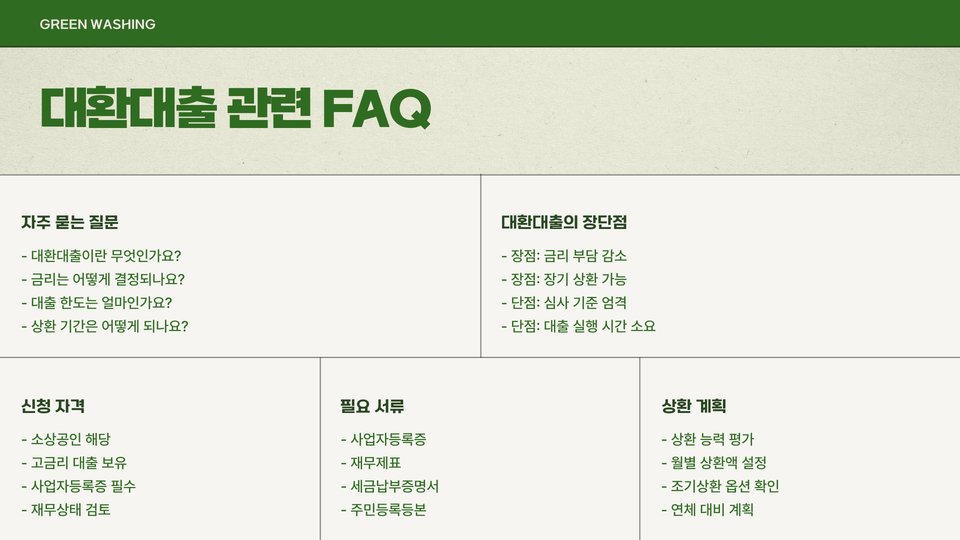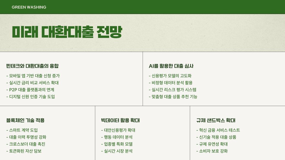 - 대환대출의 장점을 최대한 활용하기 위해 각 상품의 조건을 충분히 비교하세요.