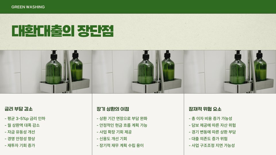 대환대출은 기존의 대출을 새로운 대출로 대체하는 방식입니다. 이 과정에서 가장 큰 장점은 저금리로 대출을 받을 수 있다는 점입니다. 고금리 대출을 받고 있는 소상공인이라면 이 기회를 통해 이자 부담을 줄일 수 있습니다.