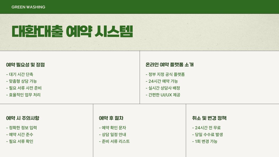 | A은행 대환대출 | 3% | 5년 | 간소화된 심사 |