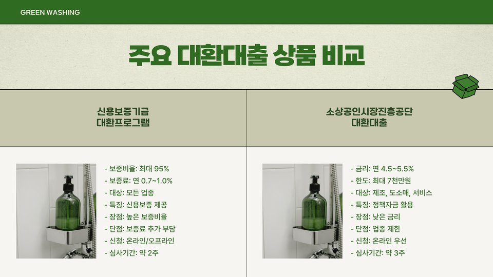 소상공인들이 많이 이용하는 대환대출 상품을 비교해 보겠습니다. 여러 금융기관에서 제공하는 대환대출 상품은 각각의 조건이 다르기 때문에, 본인의 상황에 맞는 상품을 선택하는 것이 중요합니다. 아래는 주요 대환대출 상품의 비교입니다: