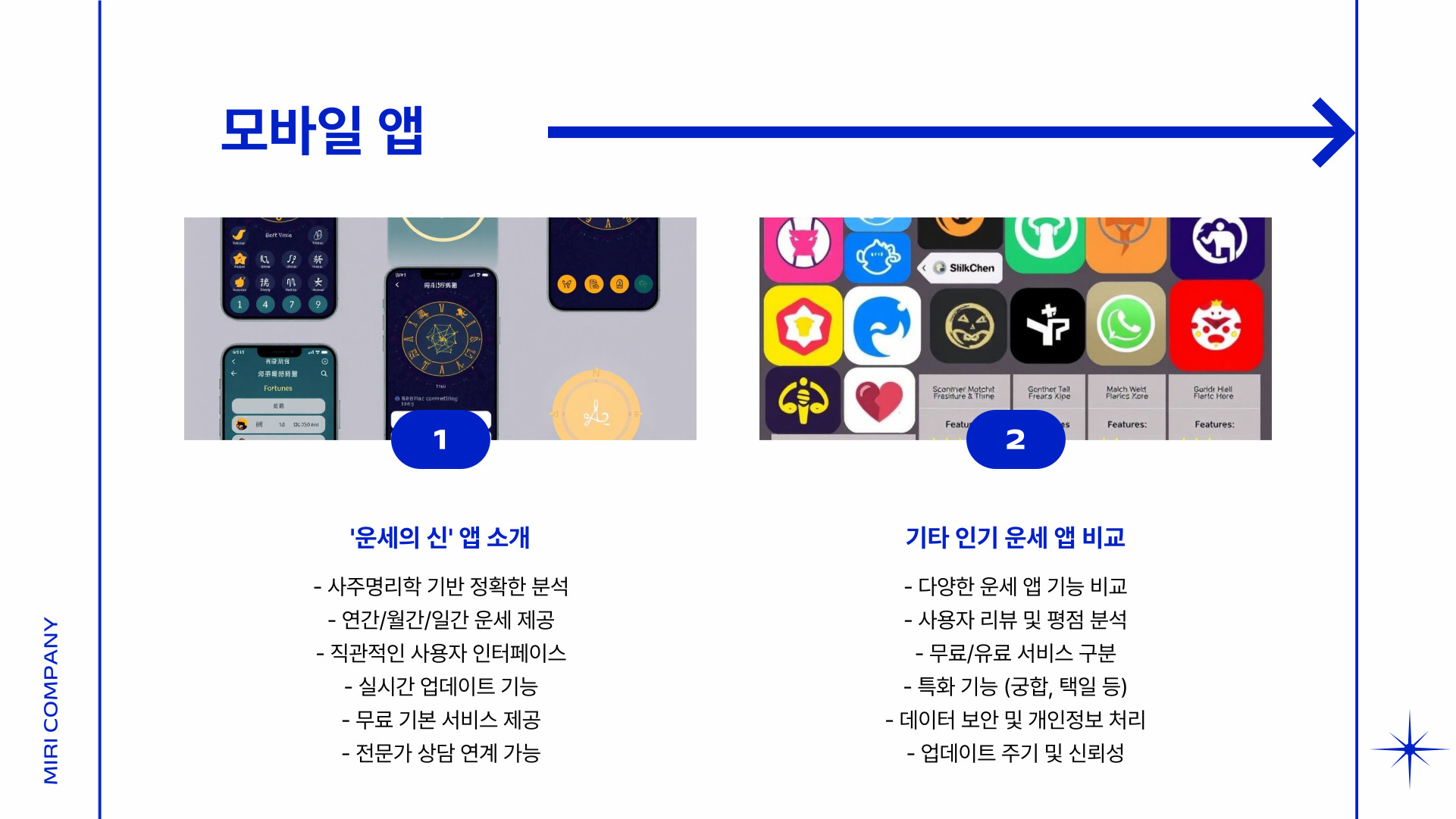 - 생년월일, 생시 정보 입력 후 맞춤형 운세 제공.