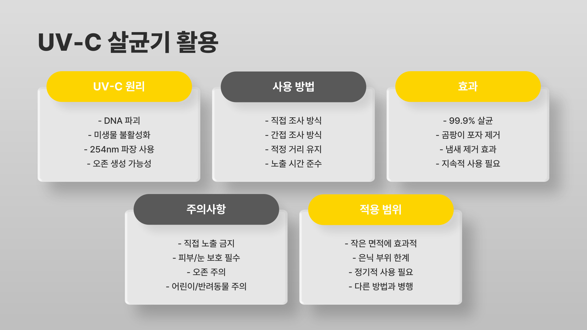 - 자외선 살균: 자외선 램프를 사용해 곰팡이를 제거할 수 있습니다.