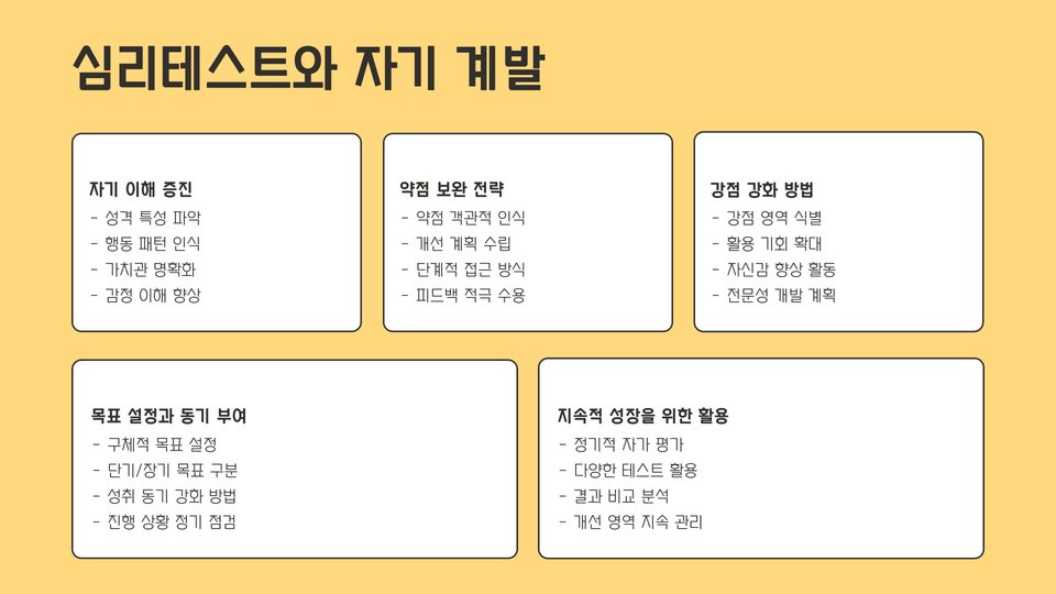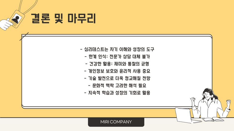 - 심리테스트는 자기 이해와 정서 조절에 도움을 줍니다.
