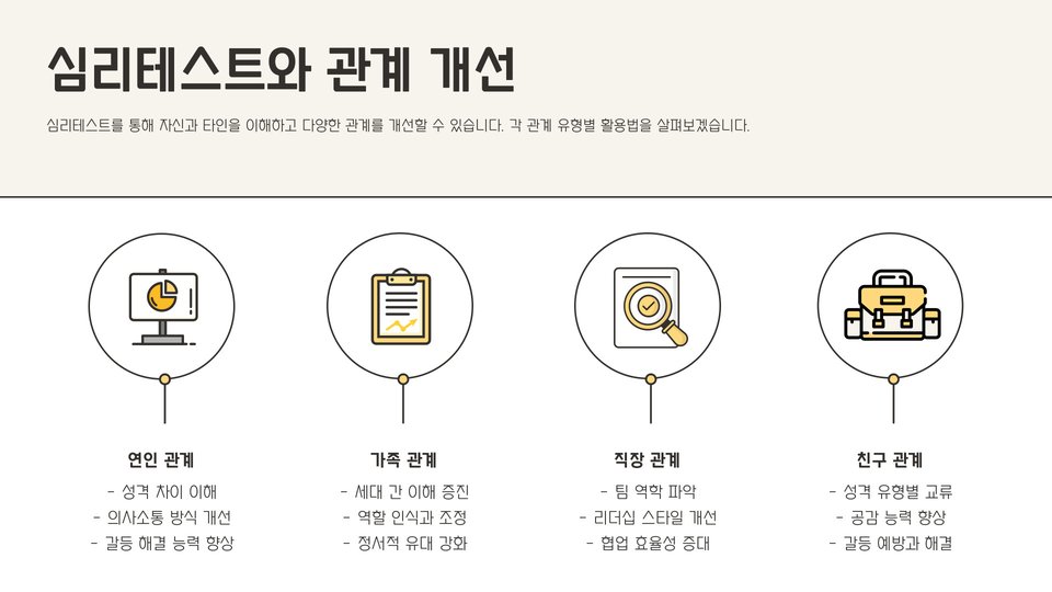 - 심리테스트는 대인 관계 개선에 도움을 준다.