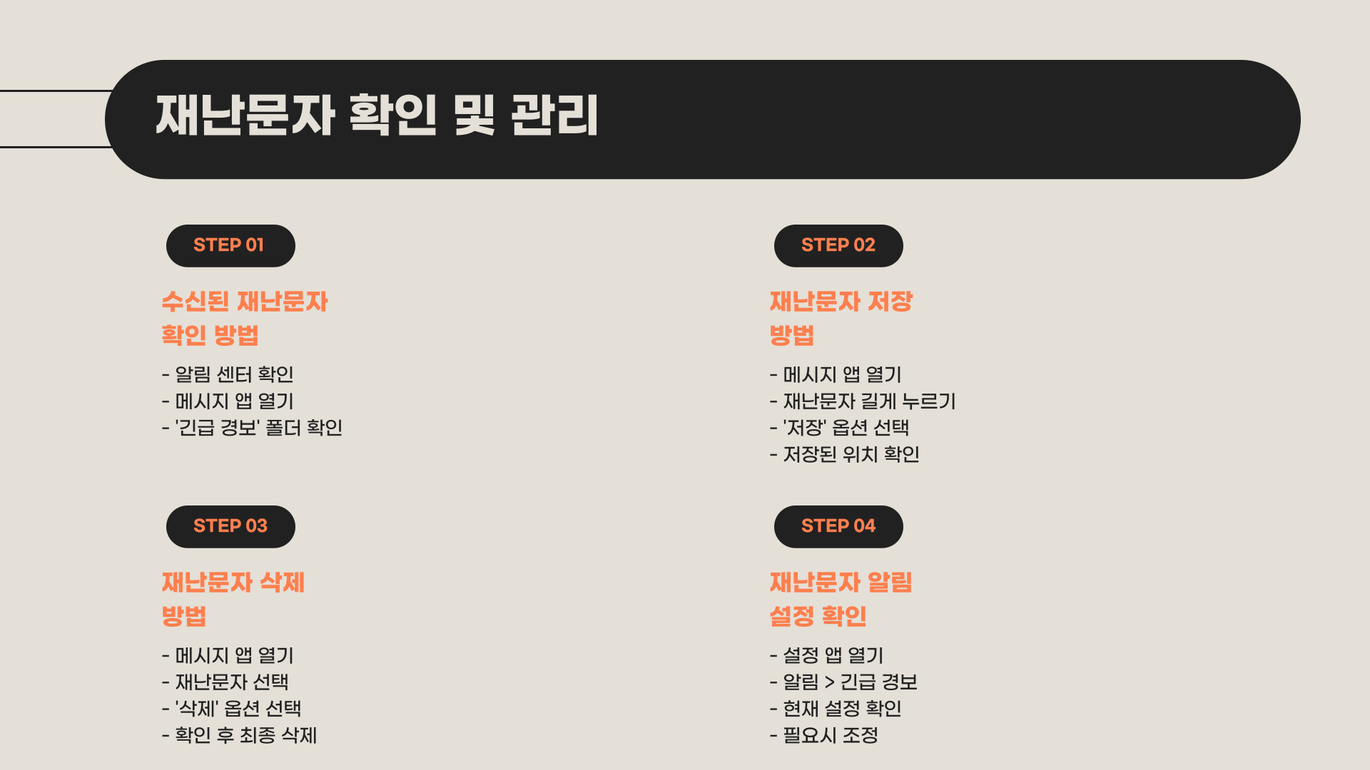 - 재난문자가 수신되면 즉시 확인하고 대응해야 한다.