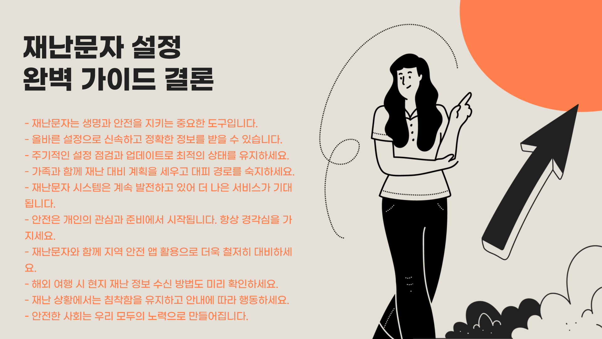 이러한 방법들로 재난문자 알림을 설정하고, 알림을 접수한 후 신속하게 대처하는 것이 가능합니다. 아이폰 사용자가 이러한 재난문자 알림 시스템을 잘 이해하고 적극 활용하기를 바랍니다. 재난에 대한 준비는 결국 우리 모두의 안전을 지키는 길입니다.