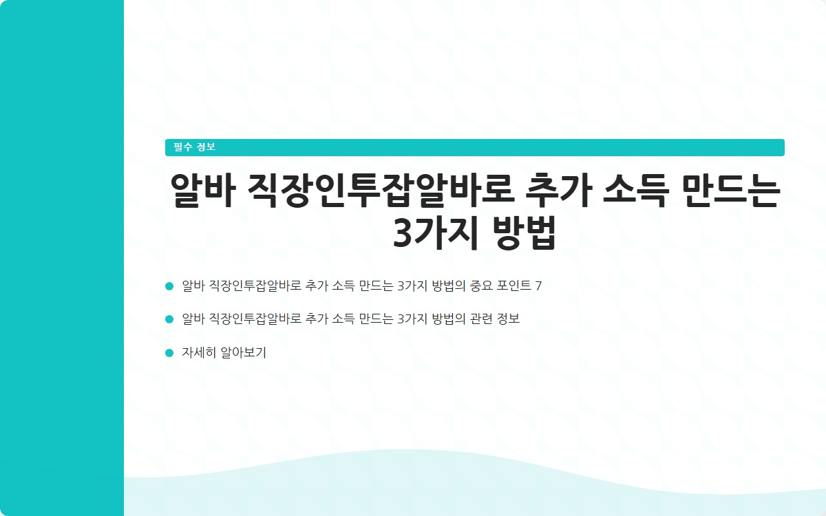 알바 직장인투잡알바로 추가 소득 만드는 3가지 방법