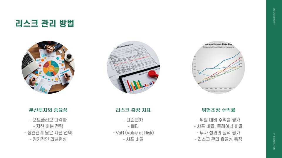 - 분산 투자를 통해 리스크를 줄이자.