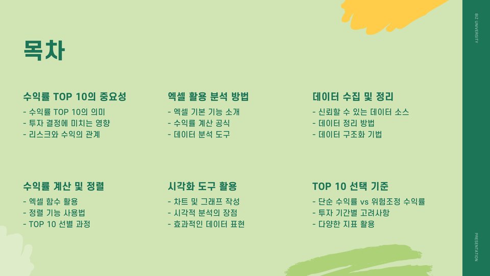 엑셀 수익률 TOP 10 선택 가이드