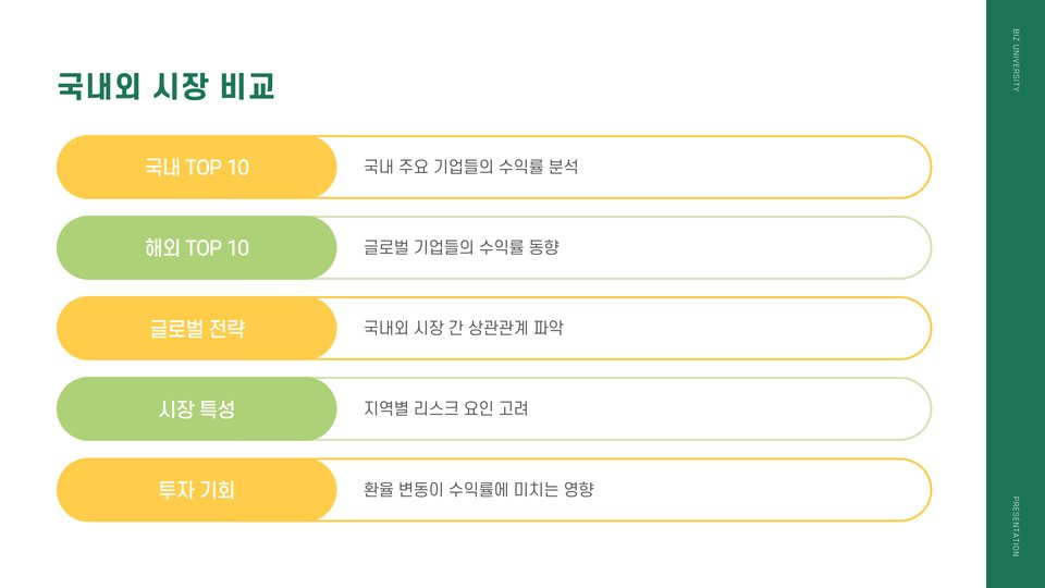 엑셀을 통해 수익률을 비교할 때 고려해야 할 중요한 요소 중 하나는 시장의 변동성을 반영하는 것입니다. 예를 들어, 금리 변화나 정치적 사건 등 외부 요인은 수익률에 큰 영향을 미칠 수 있습니다. 따라서, 데이터를 분석할 때 이러한 변수를 포함시키는 것이 중요합니다.