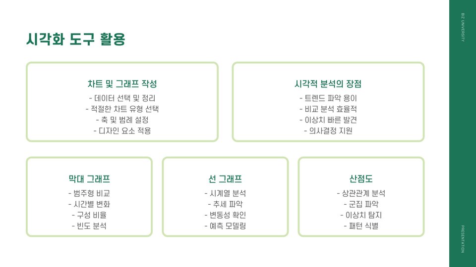 - 시각적 데이터 분석이 가능하여 이해도를 높인다.