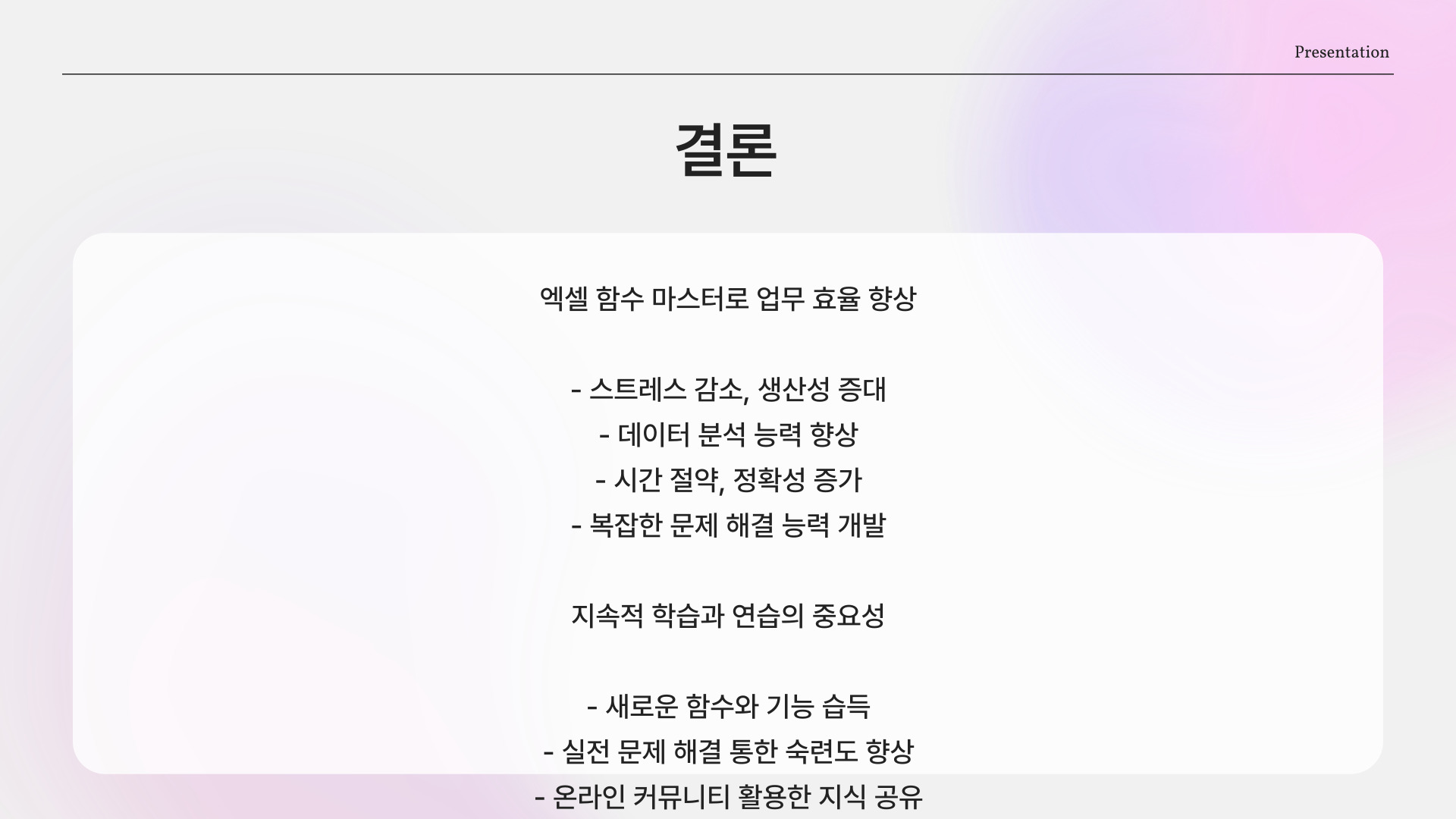 엑셀 함수 인수로 스트레스를 해결하는 방법을 살펴보았습니다. 데이터를 보다 효율적으로 관리하고 분석하기 위해서는 함수와 그 인수를 올바르게 사용하는 것이 필수적입니다. 항상 정확한 데이터 준비와 인수 검토를 통해 스트레스를 줄이시길 바랍니다. 엑셀을 통해 더 많은 가치를 창출하길 바랍니다.