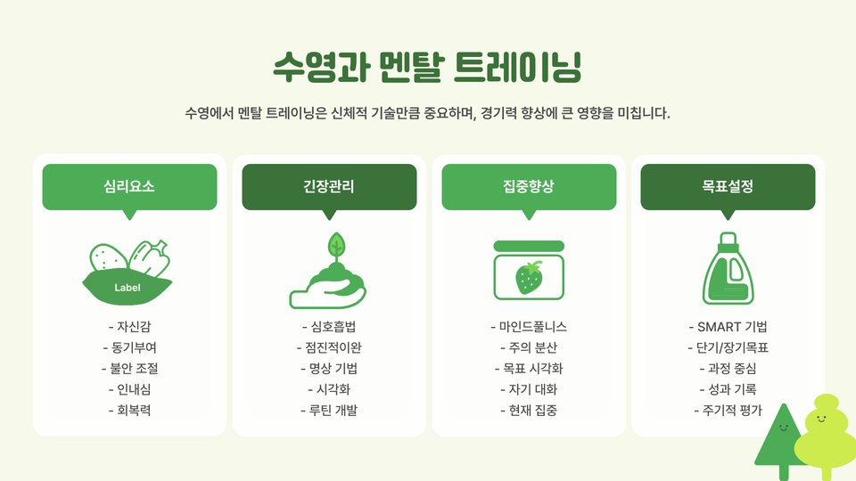 대회 준비 과정에서 멘탈 관리도 중요합니다. 긴장감을 줄이기 위해 심호흡, 이미지 트레이닝 등을 통해 자신을 다스리는 방법을 익히는 것이 좋습니다.