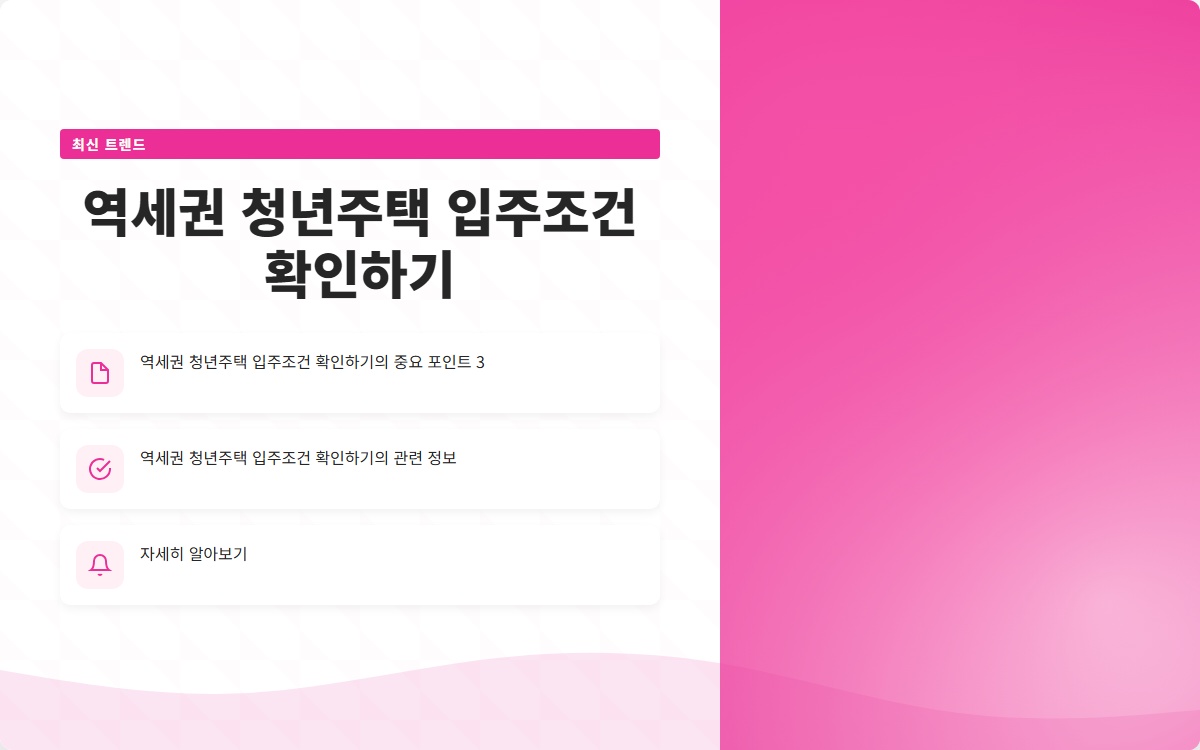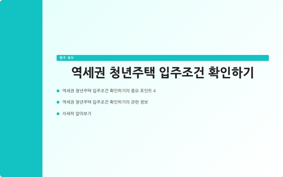최근 청년 주택청약에 대한 관심이 높아지면서, 특히 역세권 청년주택의 입주 조건이 많은 이들의 관심을 끌고 있습니다. 청년층이 주거 문제를 해결하기 위해서는 정확한 정보가 필수적입니다. 이번 포스트에서는 역세권 청년주택의 입주 조건을 자세히 알아보고, 청약을 준비하는 데 도움이 되는 다양한 정보를 제공하겠습니다.