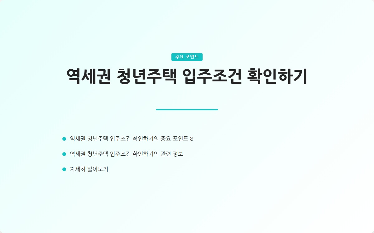 결론적으로, 역세권 청년주택은 청년들에게 주거 안정을 제공하는 훌륭한 선택입니다. 입주 조건을 잘 이해하고 준비하여, 보다 나은 주거 환경을 누리시길 바랍니다.