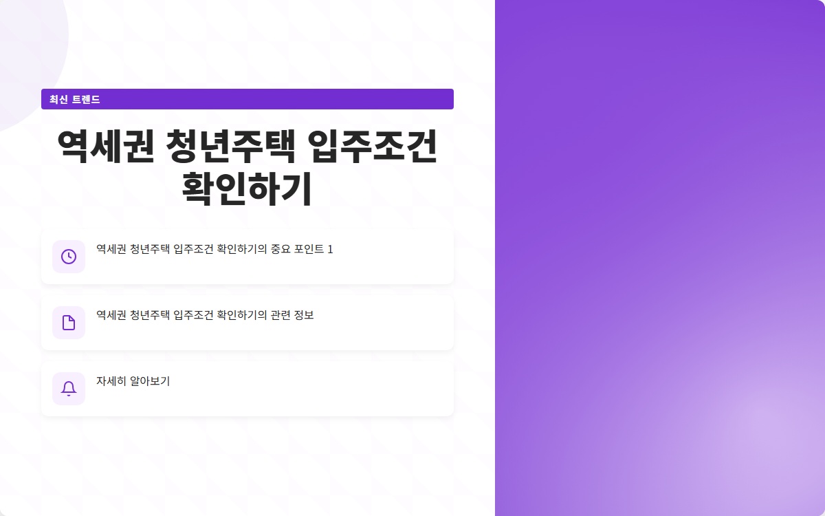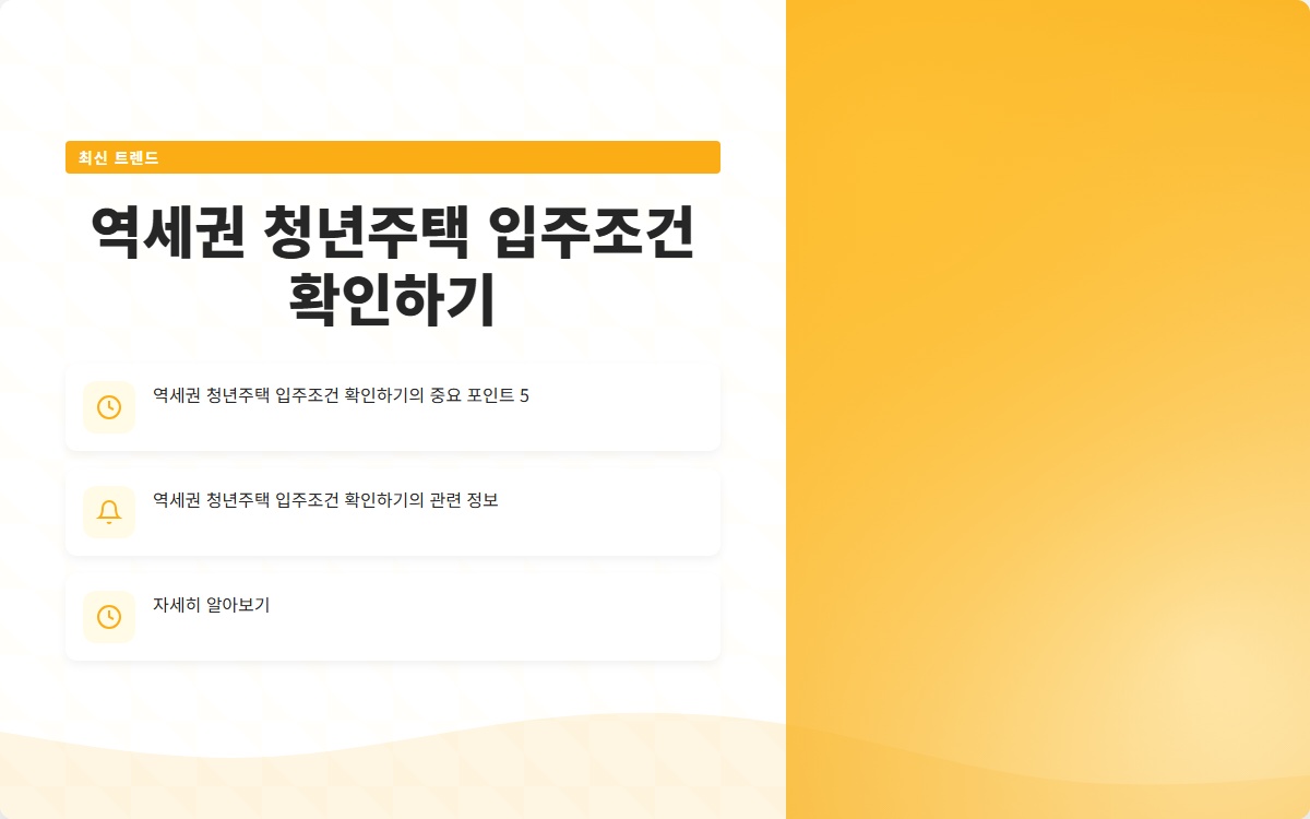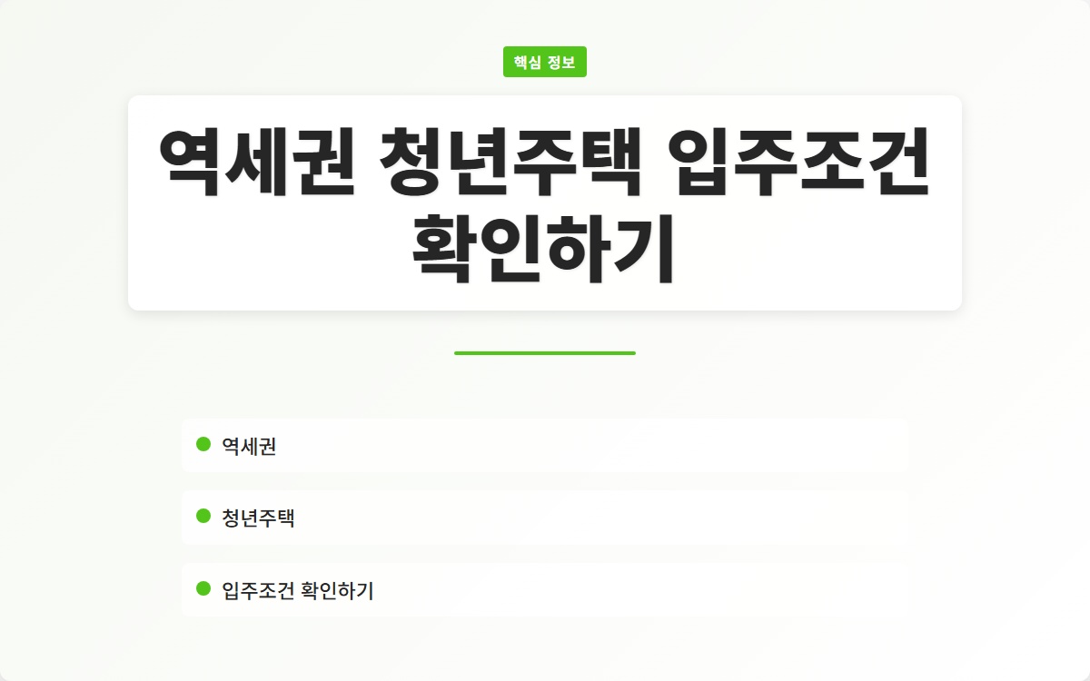 최근 청년 주택청약에 대한 관심이 높아지면서, 특히 역세권 청년주택의 입주 조건이 많은 이들의 관심을 끌고 있습니다. 청년층이 주거 문제를 해결하기 위해서는 정확한 정보가 필수적입니다. 이번 포스트에서는 역세권 청년주택의 입주 조건을 자세히 알아보고, 청약을 준비하는 데 도움이 되는 다양한 정보를 제공하겠습니다.