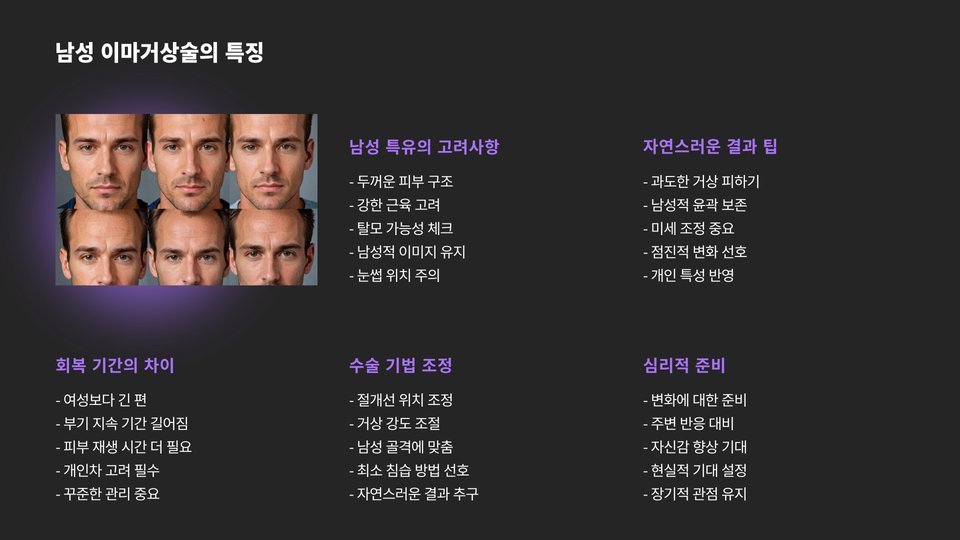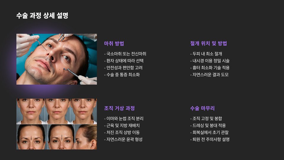 이마거상 수술은 뼈 구조와 피부 탄력에 따라 개인 차이가 있지만, 일반적으로 수술 후 1-2주 내에 회복됩니다. 이 과정에서 주의해야 할 점은 반드시 신뢰할 수 있는 병원이나 의료진을 선택하는 것입니다. 많은 사람들이 이 수술을 고민하면서도, 어떤 의료 기관에서 받는 것이 가장 안전하고 효과적인지에 대한 고민을 하게 됩니다.