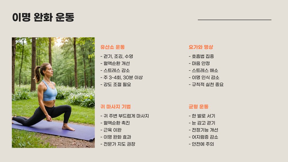 이명을 관리하는데 효과적인 방법은 크게 두 가지로 나뉩니다. 첫째는 음악 치료나 소음 마스킹과 같은 비의학적 방법입니다. 이 방법들은 외부 소리를 통해 이명을 가리고, 정신적으로 안정감을 줄 수 있습니다. 필요에 따라 특정 주파수의 소리를 활용하면 이명 증상을 완화할 수 있습니다.