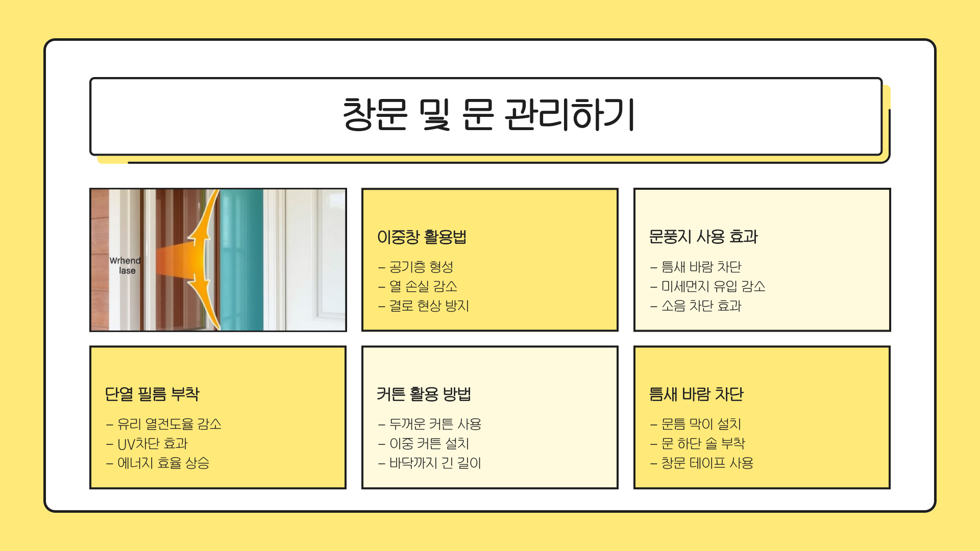 예를 들어, 오래된 창문은 단열이 잘되지 않아 외부의 차가운 공기가 들어오게 됩니다. 이 경우 이중창이나 창문 씰을 설치하여 공기의 유입을 막을 수 있습니다. 이렇게 하면 보일러의 효율을 극대화할 수 있습니다.