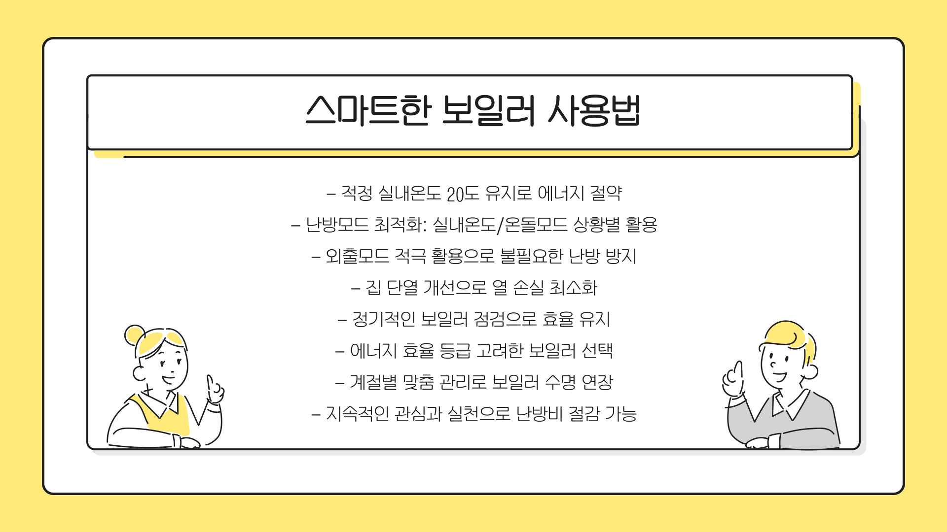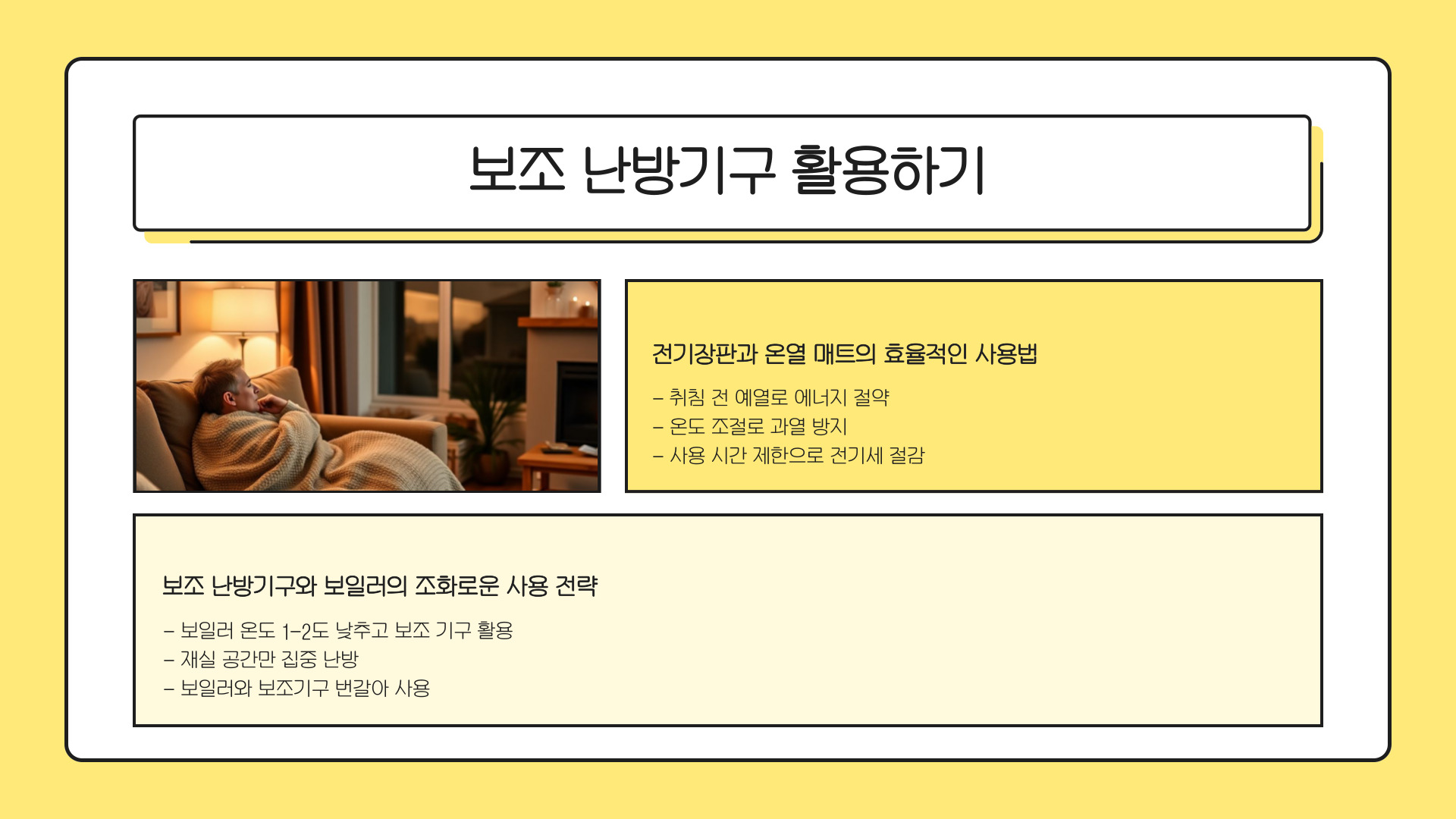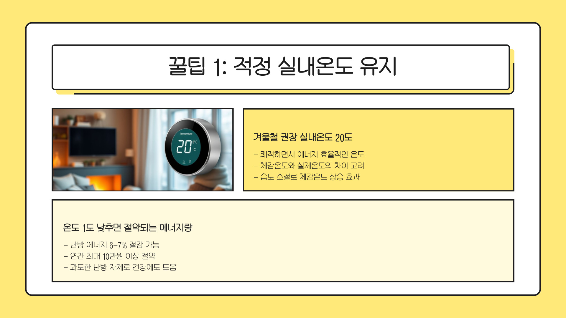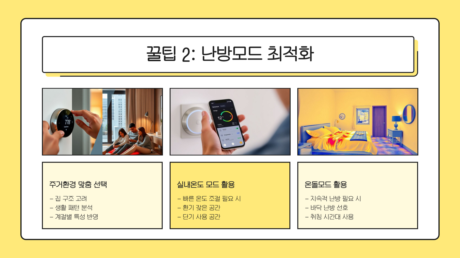 - 스마트 기술을 활용하여 효율적으로 난방을 관리하자.