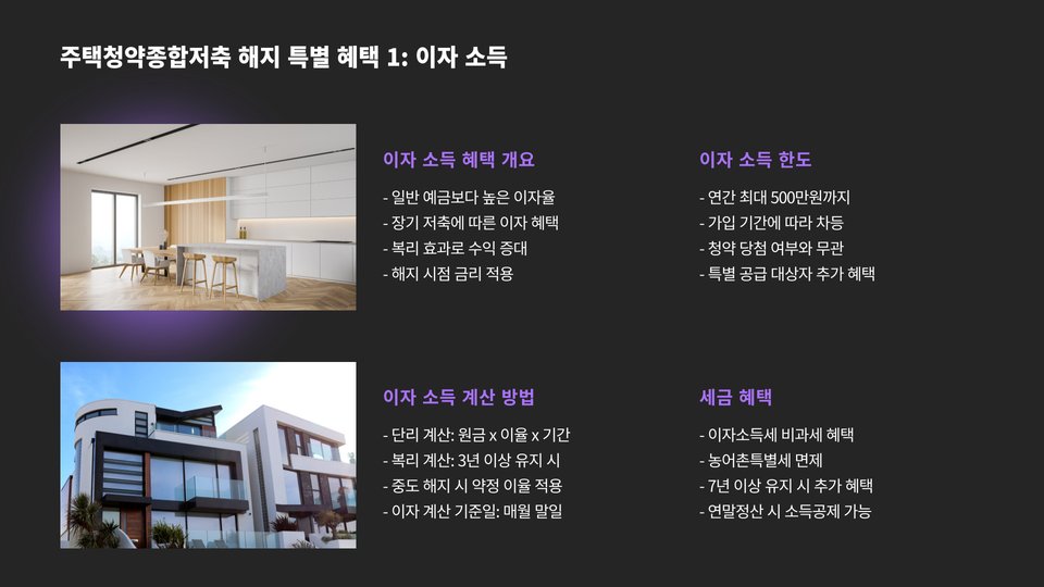 주택청약 종합저축을 해지할 때 여러 가지 특별 혜택이 존재합니다. 첫째로, 해지 시 발생하는 세금 면제가 있습니다. 특정 금액 이하의 저축 해지 후 이자소득세가 면제되는 경우가 많습니다. 이는 장기적으로 볼 때 상당한 금전적 혜택이 될 수 있습니다. 둘째, 일정 기간 이상 예치하면 추가 이자 혜택이 주어지는 경우도 있어 이를 활용하는 것이 좋습니다.