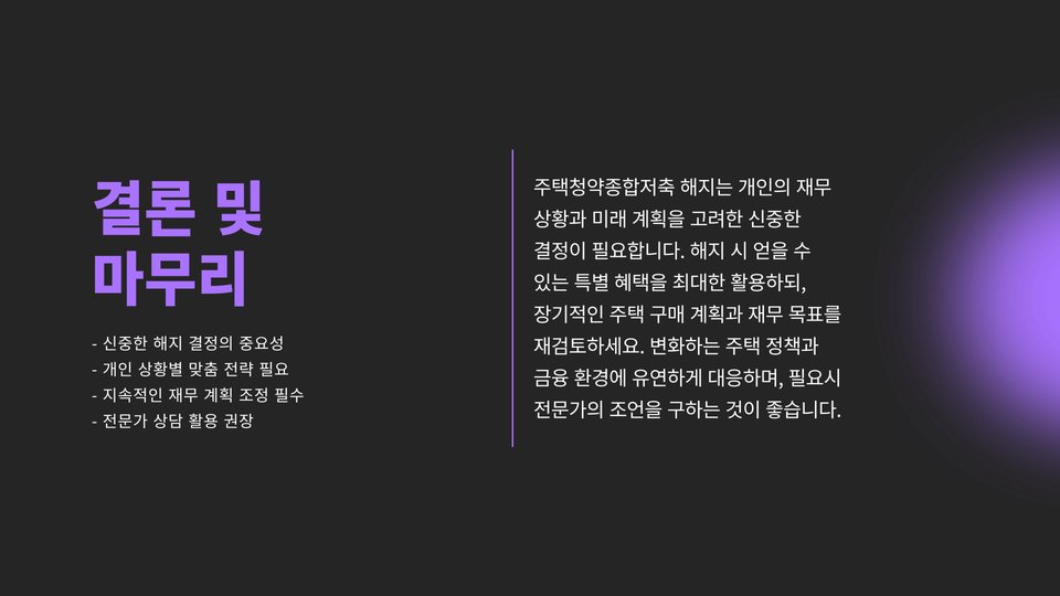 주택청약 종합저축 해지는 각자의 재정 상황에 맞춰 충분한 정보를 바탕으로 신중하게 진행해야 합니다. 해지 후에도 여러 가지 혜택을 받을 수 있는 만큼, 잘 활용하여 최적의 재정 관리를 할 수 있도록 해야 합니다.