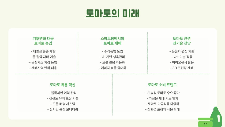토마토는 맛과 건강을 모두 챙길 수 있는 훌륭한 식품입니다. 다양한 효능을 통해 우리의 생활을 더욱 건강하게 만들어 줄 것입니다.