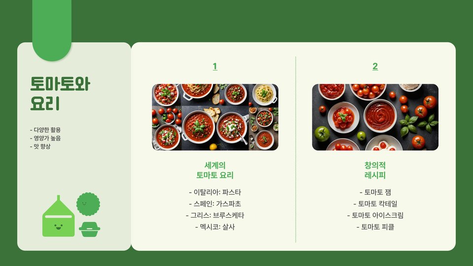 - 토마토는 비타민, 미네랄, 항산화 물질이 풍부하다.
