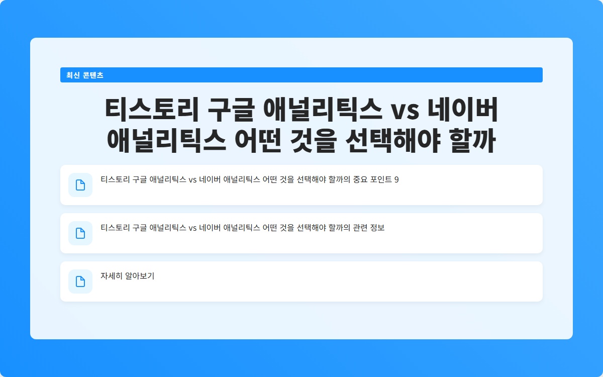 티스토리와 워드프레스 블로그는 현재 검색 결과에서 상위에 노출되는 경우가 많아, 그에 따른 수익 증가의 기회를 제공합니다. 본 글에서는 티스토리 구글 애널리틱스의 장점과 네이버 애널리틱스와의 비교를 통해 최적의 선택을 할 수 있도록 안내합니다.