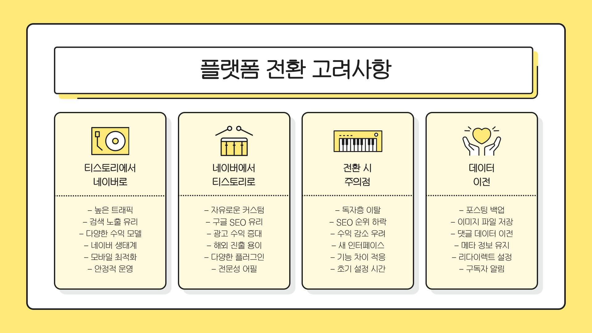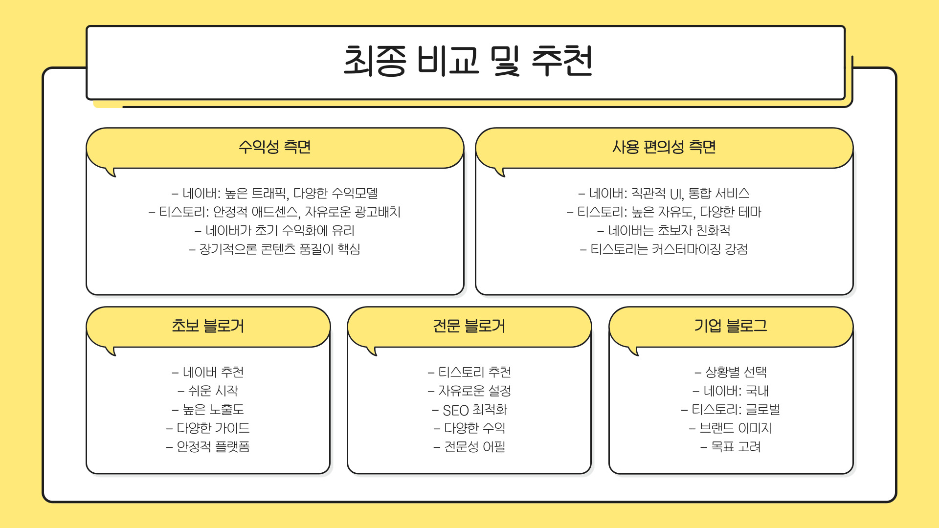 | 블로그 | 사용하기 쉬움, 커뮤니티 지원 | 장기적인 수익성 한계 가능성 |