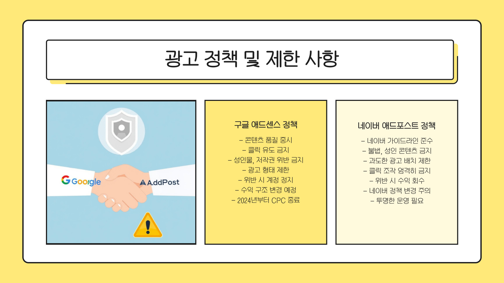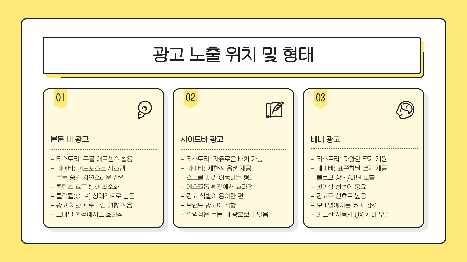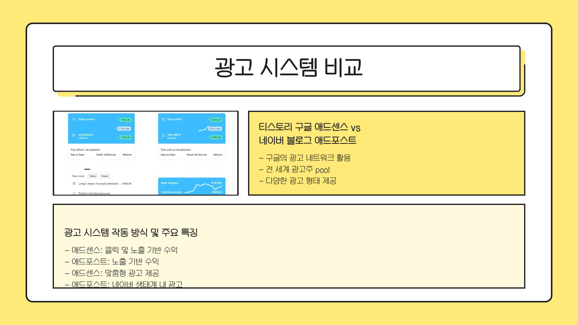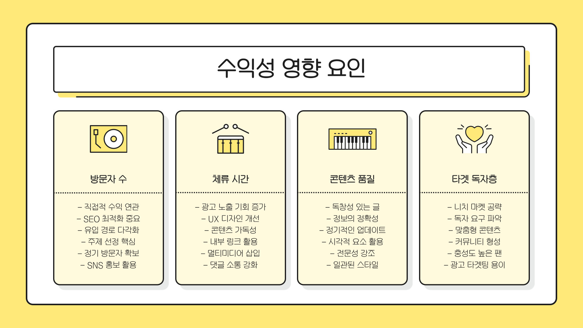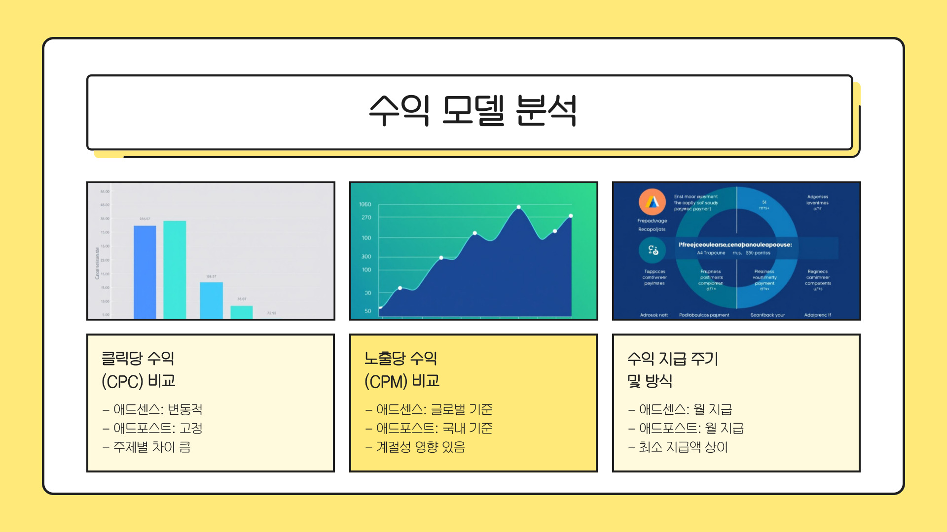 - 트래픽과 콘텐츠의 질이 수익성에 결정적 영향을 미침.