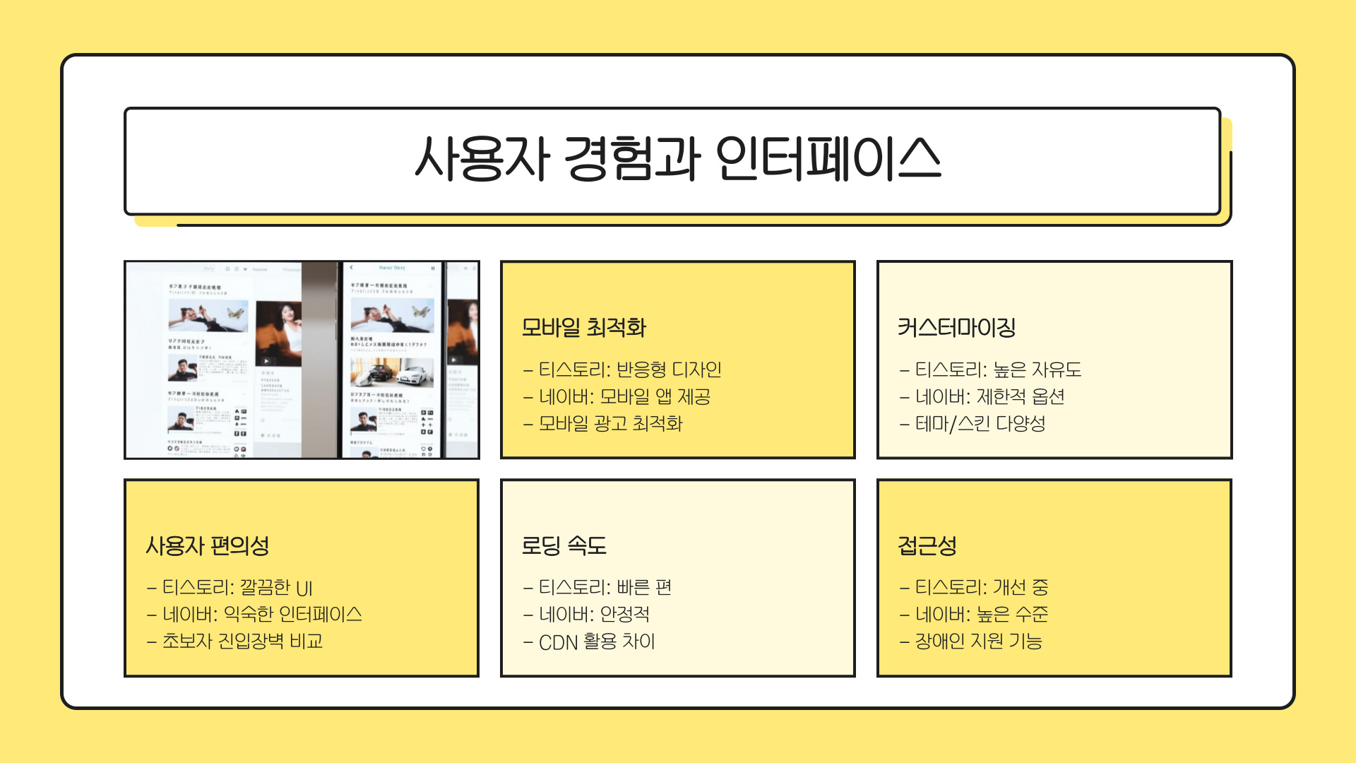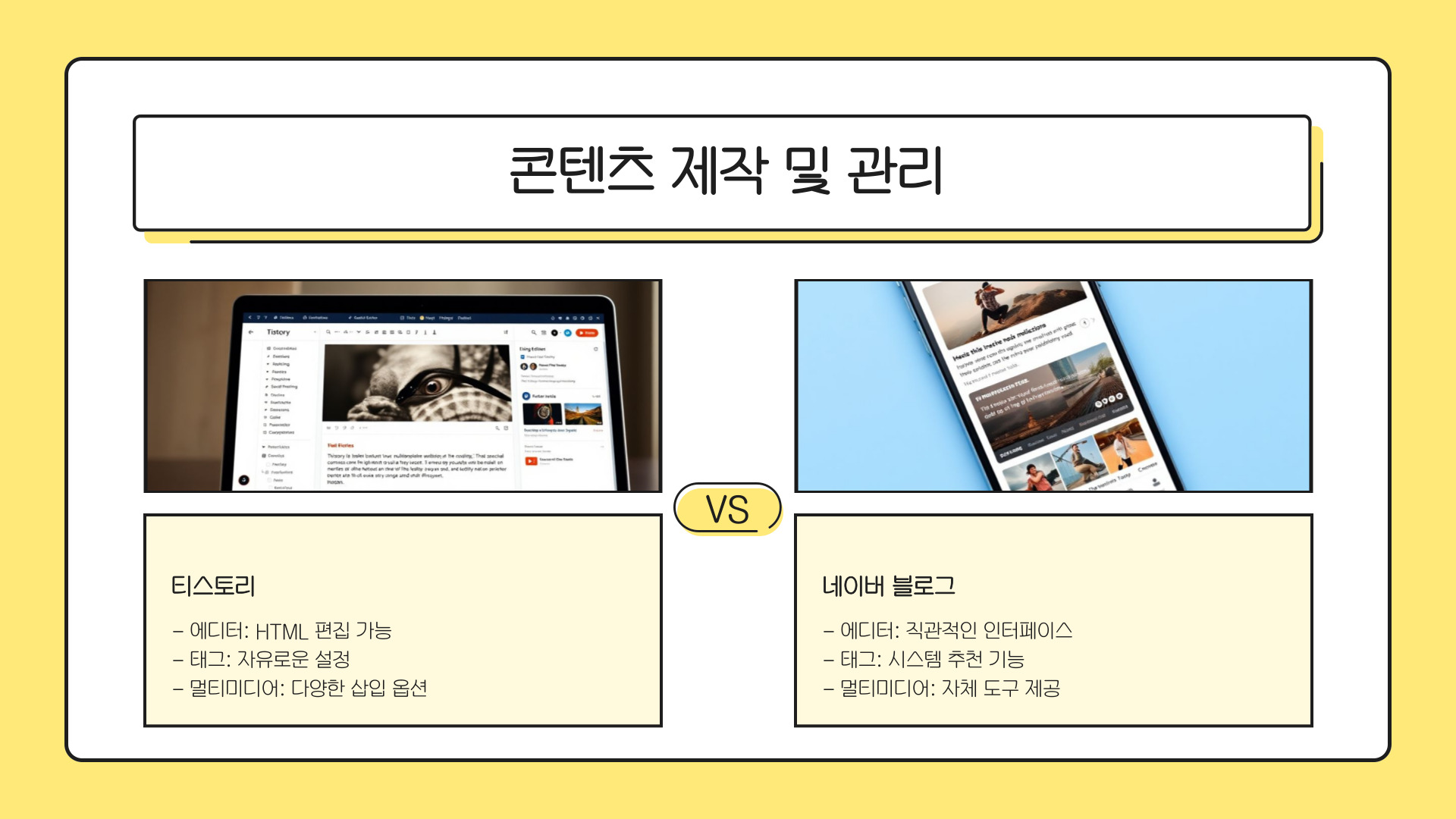 - 블로그는 사용하기 쉬운 인터페이스와 커뮤니티 지원.
