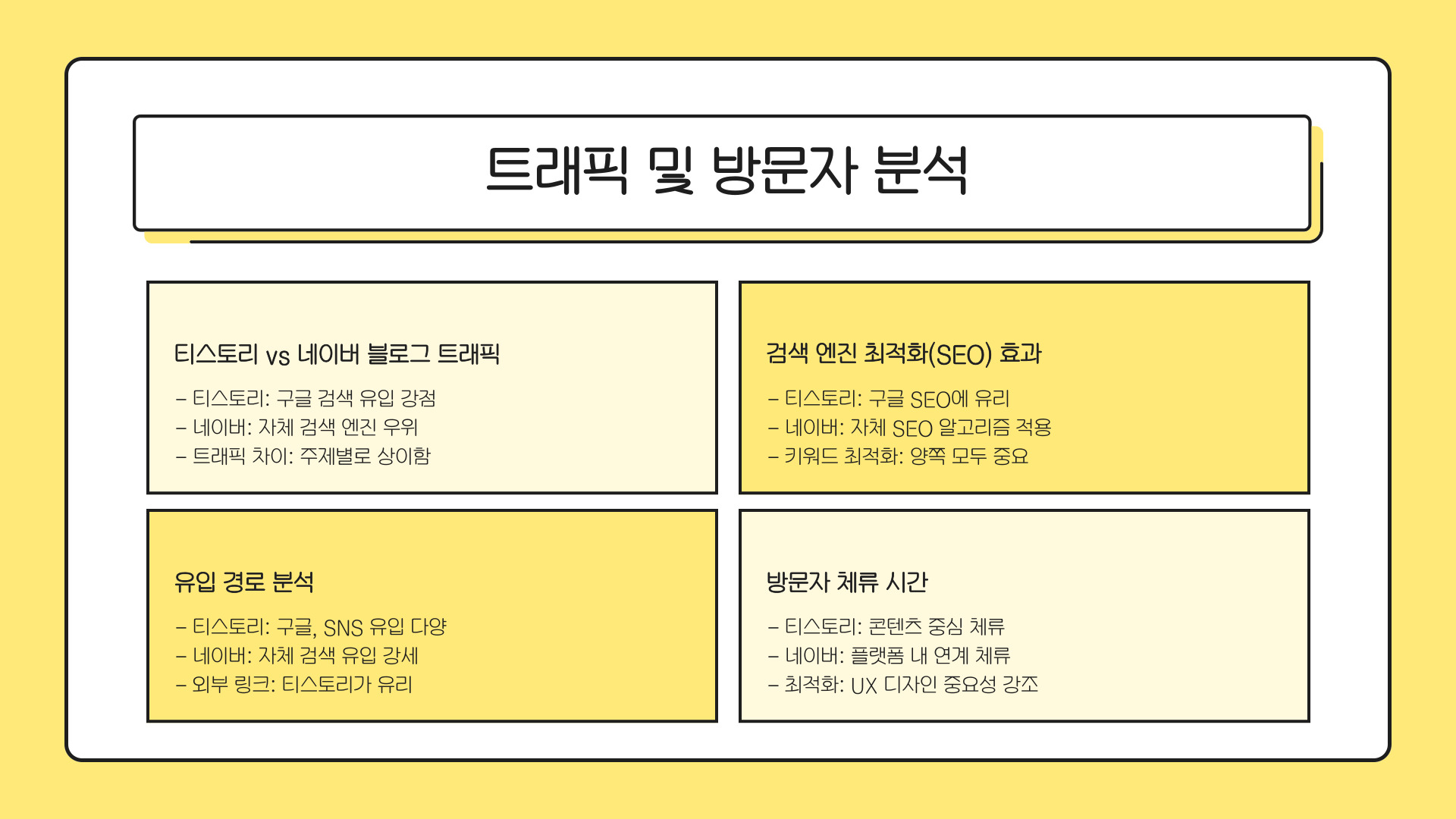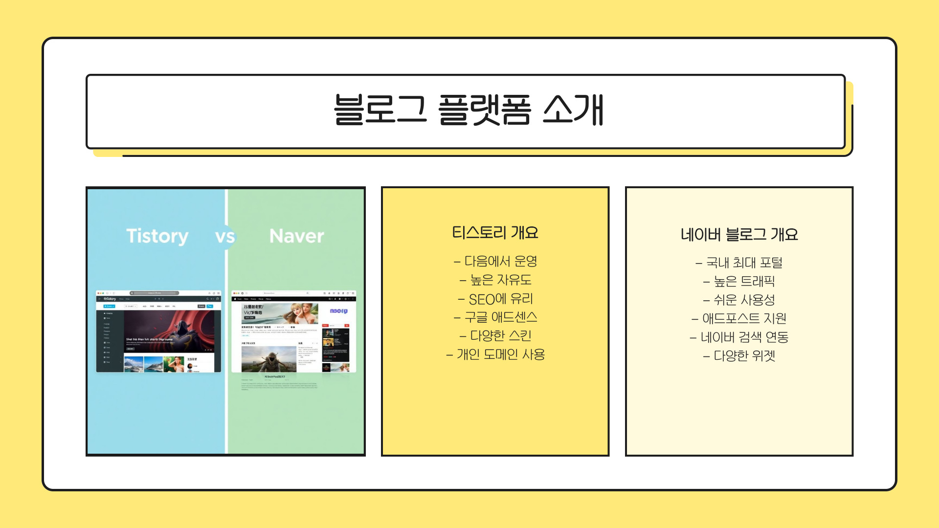 - 티스토리는 높은 자유도와 SEO 최적화 기능.