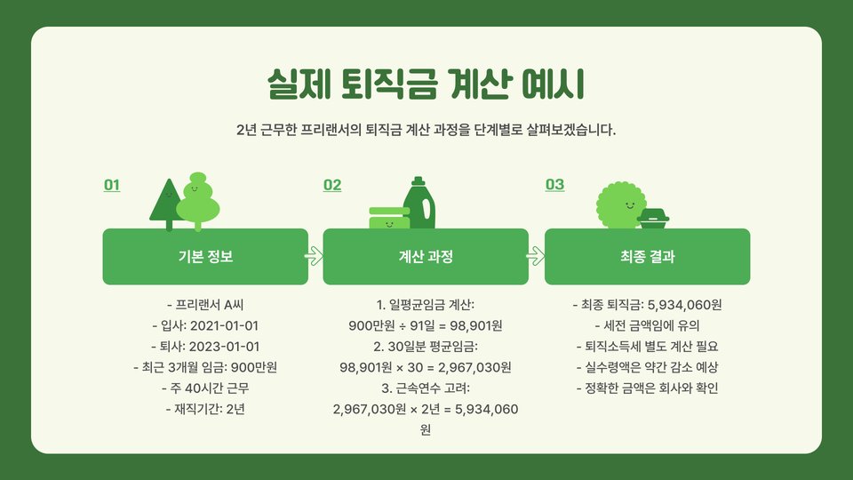 프리랜서가 퇴직금을 정확히 계산하기 위해서는 다음 사항을 고려해야 합니다: