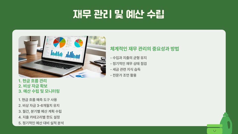 - 비용 절감 방안: 예산 관리 및 고정 비용 줄이기.