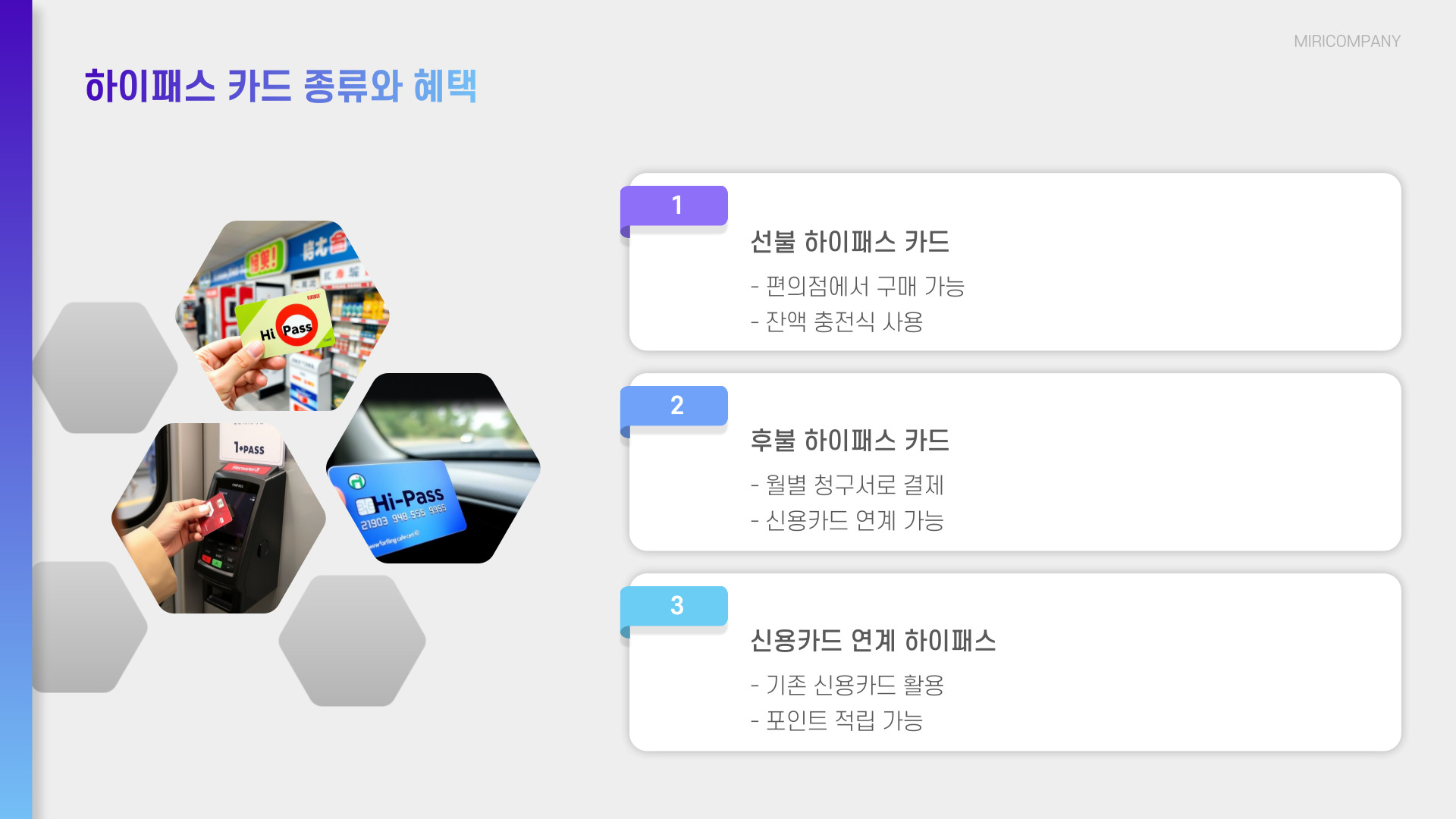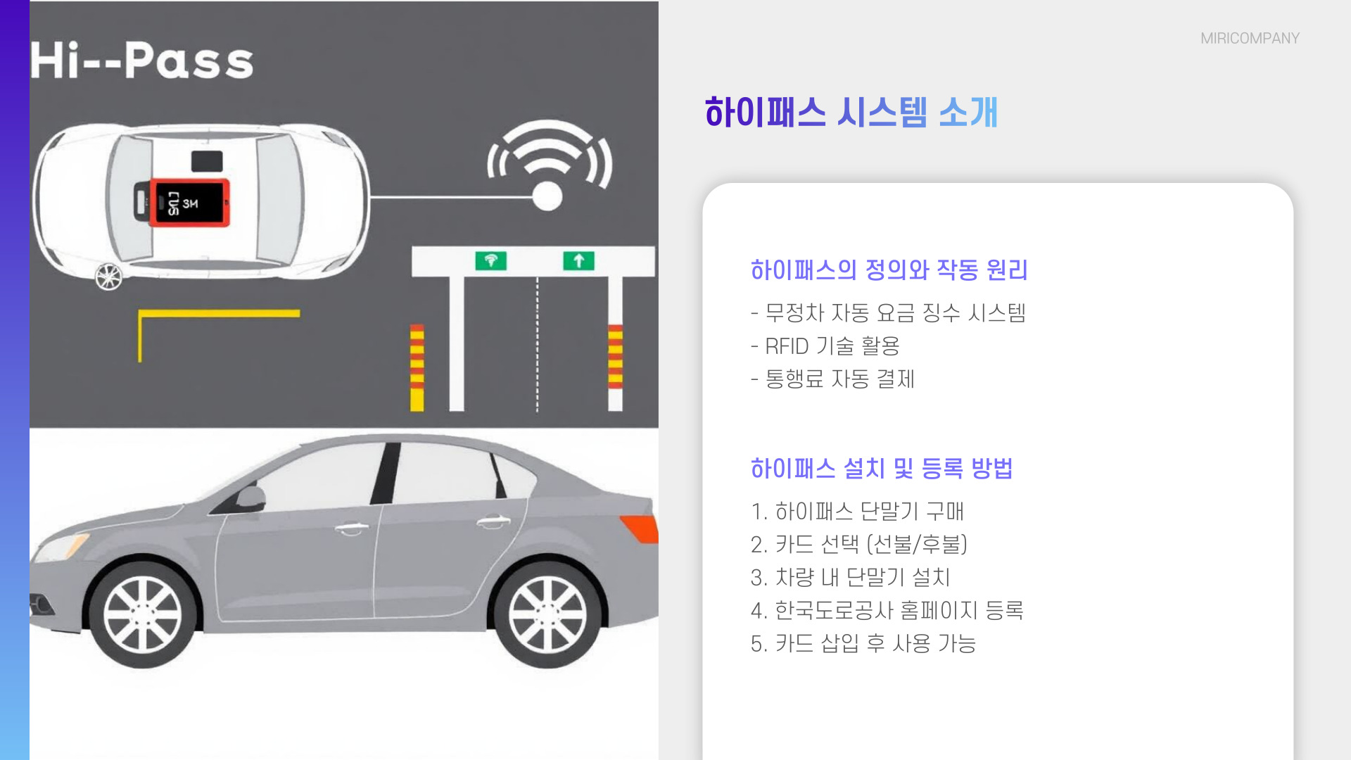 - 하이패스는 효율적인 통행료 결제 시스템입니다.